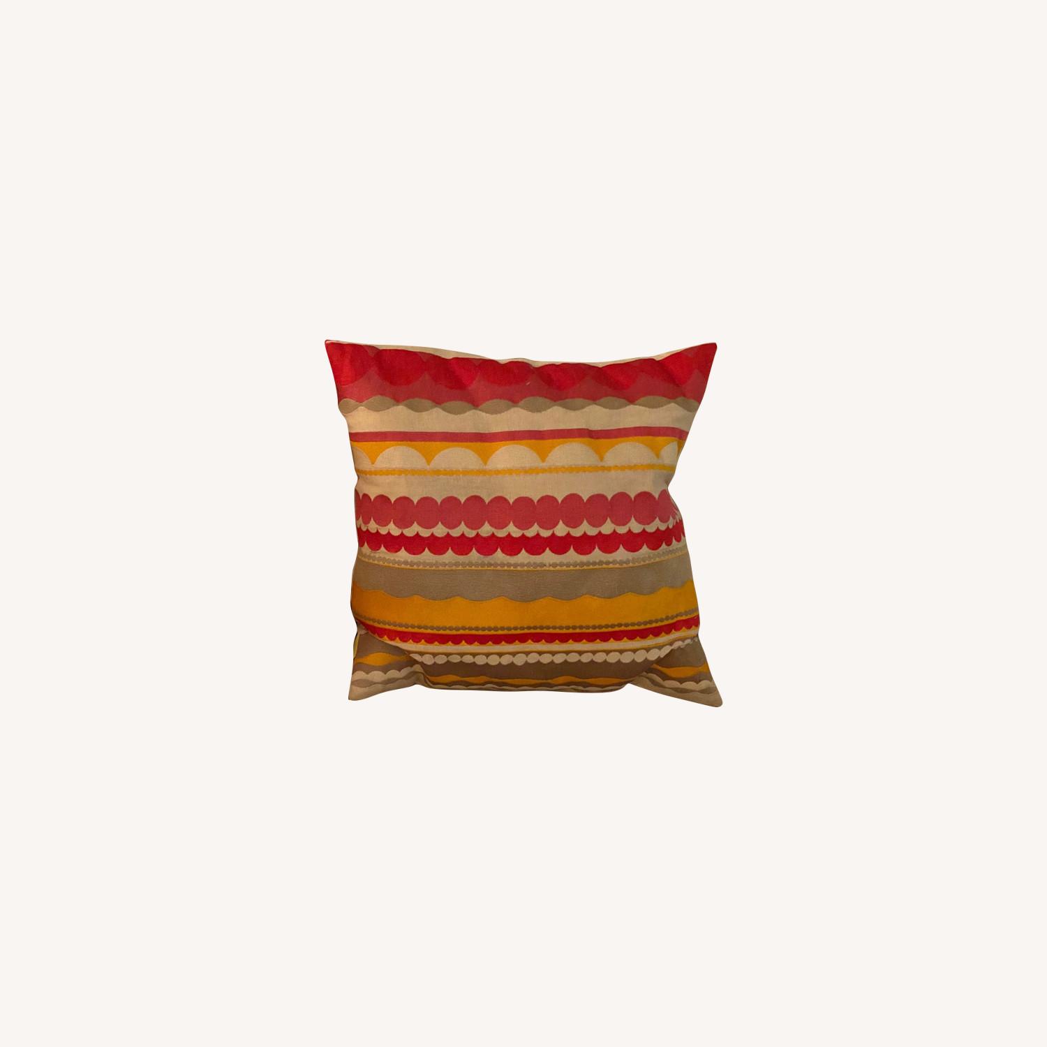 Seller's Notes:Two Trina Turk Residential Throw Pillows. Each measures 20” square 100% Linen Purchased at the NYC Trina Turk boutique for over $150 EACH! The front of both pillows is in excellent condition with no visible stains or flaws. The back of one of the pillows has a spot and a faint orange line on it. I have not made any attempt to clean the pillow but it may all come off if cleaned but no guarantees and being sold as-is