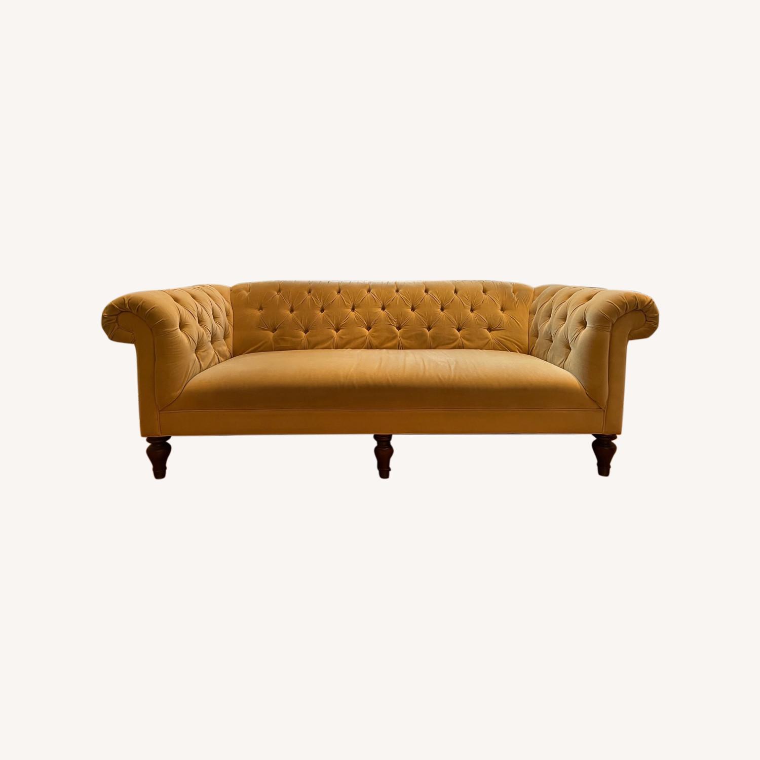 Seller's Notes:I inherited this sofa from a friend who recently moved, but it turns out that we need something a bit larger for our space so I decided to sell it. Overall, the sofa is in good condition, except for some mild discoloration on the fabric and a few small spots that you notice when you look closely (see the last 4 photos which zoom in to illustrate this). The sofa is in excellent shape in all other aspects and it is quite comfortable. It is a vivid mustard yellow color that stands out in any room without being too harsh.