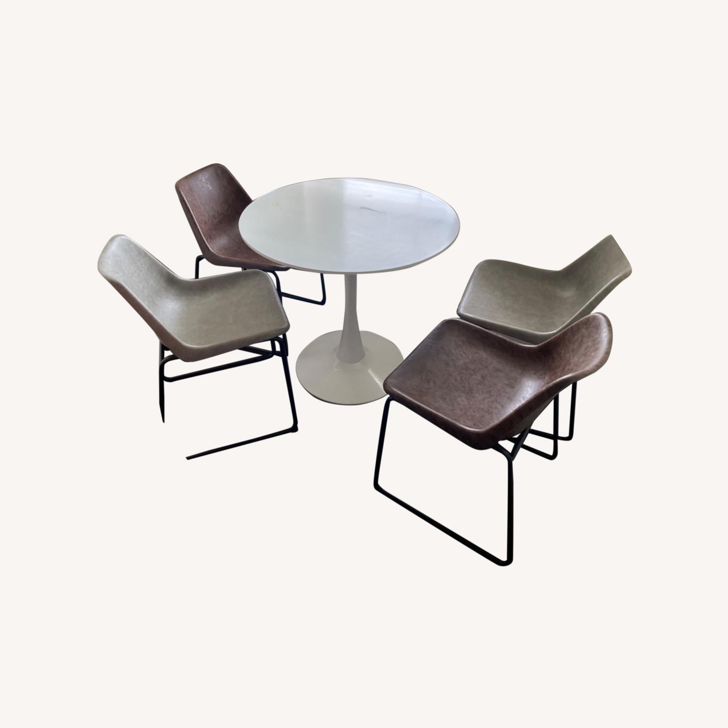 Seller's Notes:Hi! ?? I’m selling this Eero Saarinen Tulip Styled Dinning Table Set?, it comes with chairs ? already. Original price was $788 in totality, Only Selling for $200 with the chairs that goes well with the solid Gloss White Tulip Table ✨. This is a Packaged Deal together, MUST bring your own truck ? No Delivery!