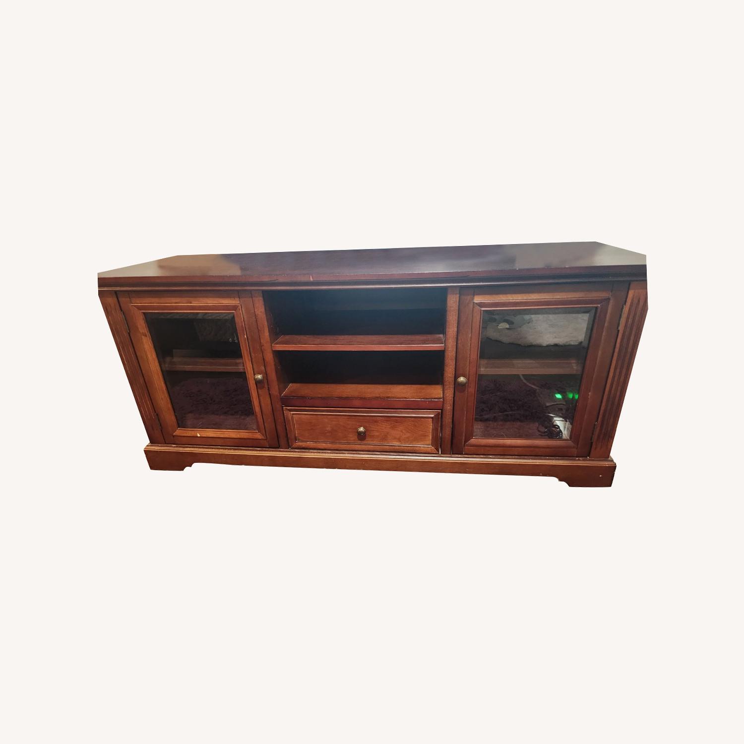 Seller's Notes:Must go, moving sale. Pickup only. Seriously inquiries only. Great condition. Some minor wear and tear. Solid cherry wood entertainment stand. Measurements: 60" X 20" X 26" NCI