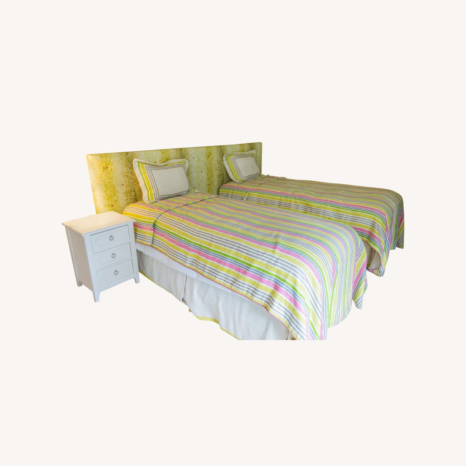 Seller's Notes:Twin box bed with skirt Green bed rest