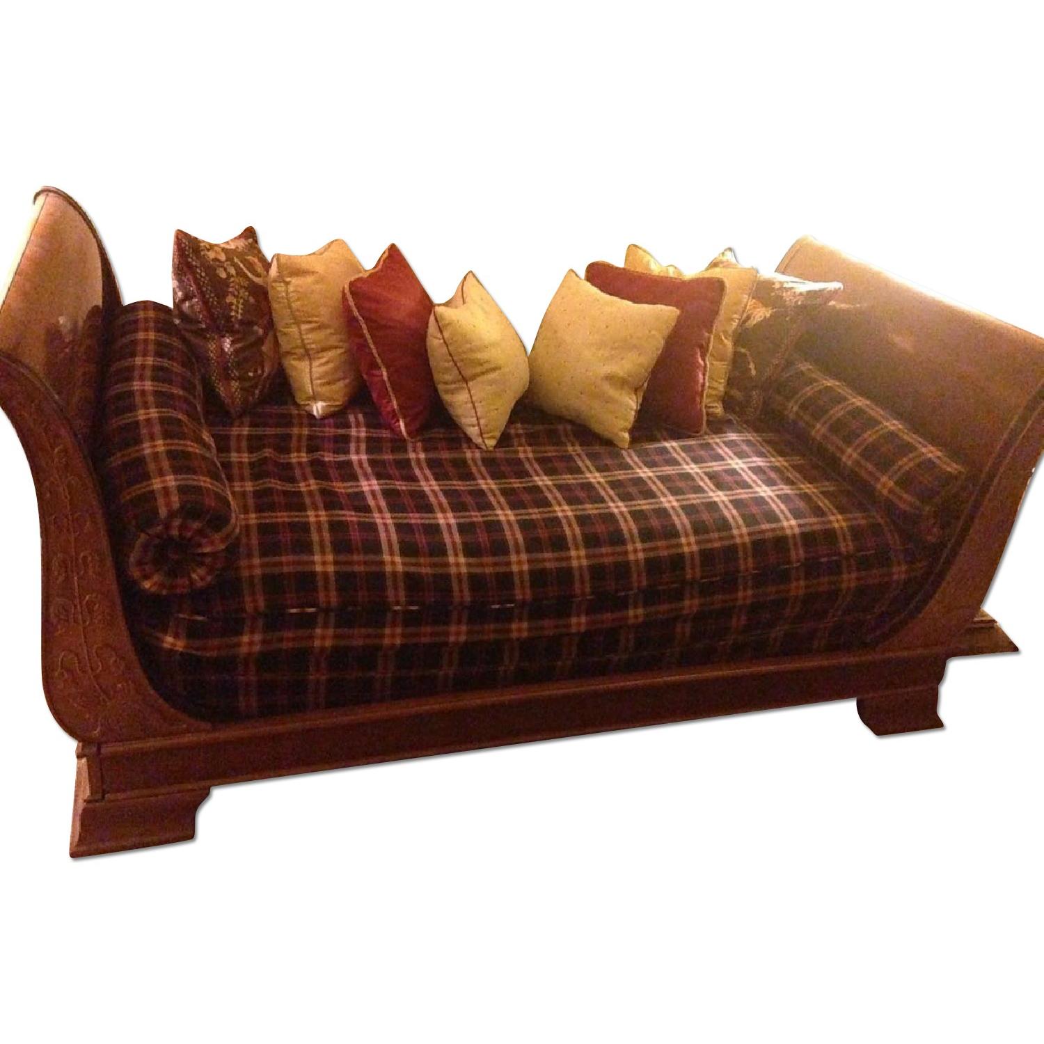 Seller's Notes:A romantic take on traditional construction, this vintage twin sleigh bed is beautifully carved from darkly finished mahogany. Its gradually sloping headboard and footboard with subtle relief carvings are perfectly suited to a range of elegant décors. Mahogany twin sleigh bed. Versatile for use as a daybed. Carved scrolled arms. Can be disassembled.
