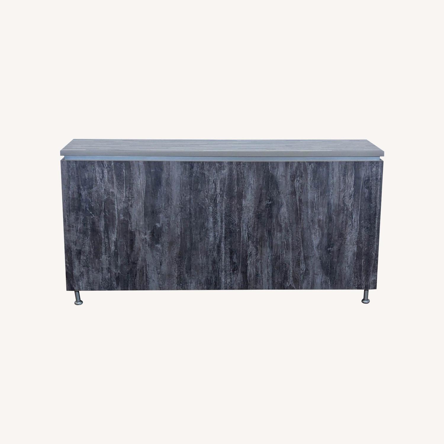Seller's Notes:Faux wood and tile buffet with interior shelving