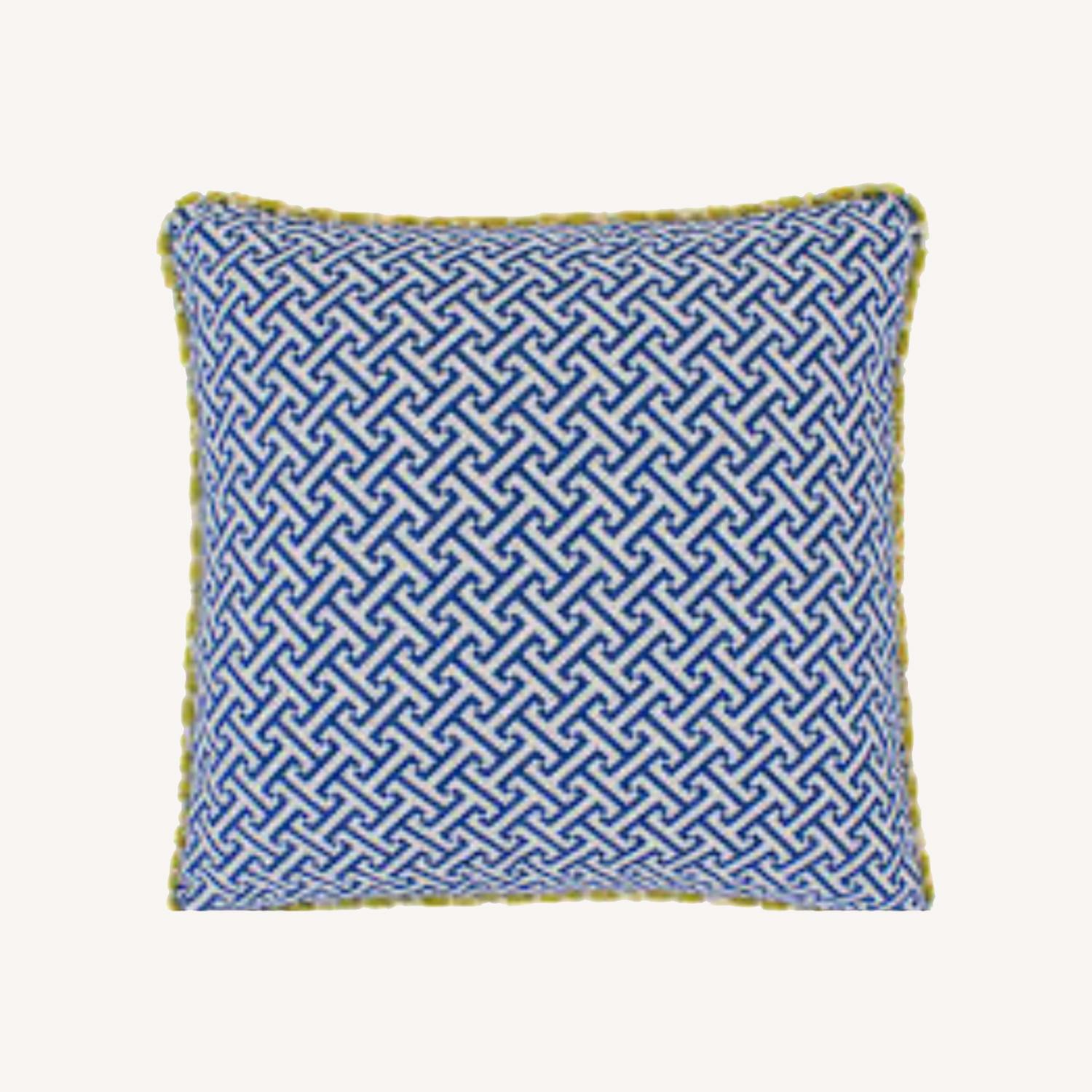Seller's Notes:Brand new; only on the couch for a party with a blue color scheme, these pillow cases are removable with an invisible YKK zipper. Photograph picture with Green Trim is just a picture from the designer to give you an accurate idea of the blue.