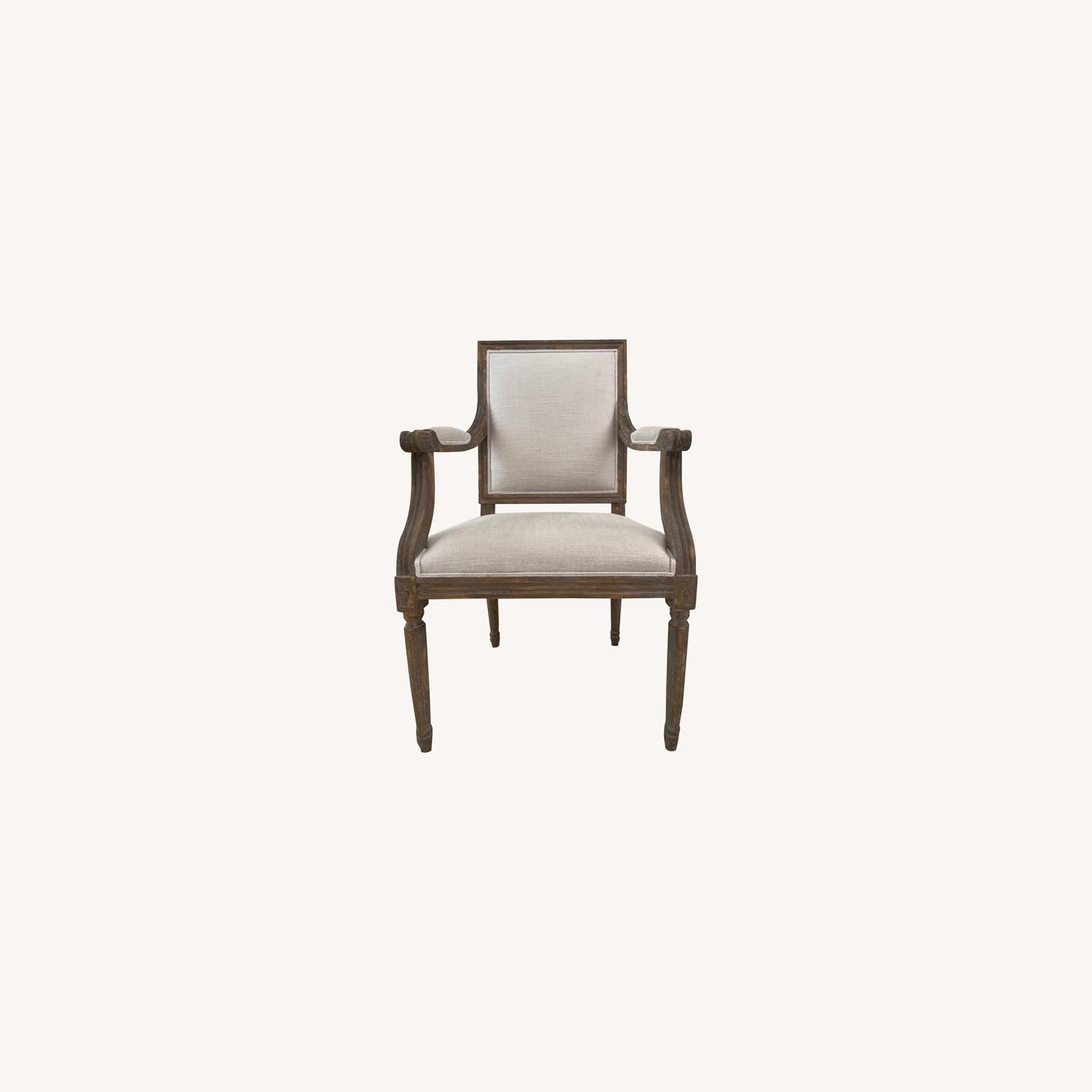 Seller's Notes:RH French square back fabric dining armchairs, set of 2. burnt oak, linen fabric, excellent condition