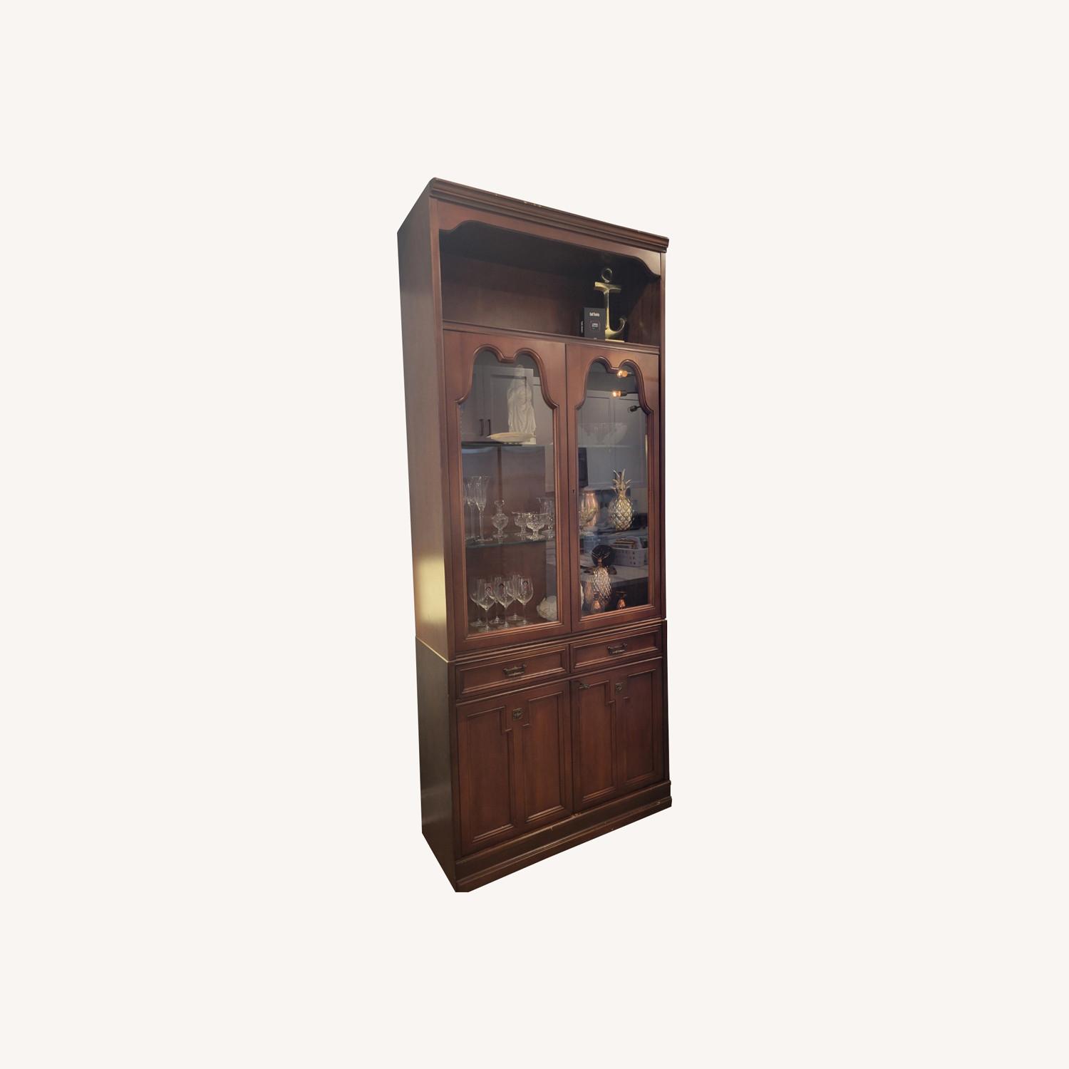 Seller's Notes:Two Very Large Curio Cabinets MOTIVATED SELLER! I had used one as a stand-up desk (the front of it drops down secretary style) and the other as a liquor cabinet. Can be used as a china cabinet or display cabinet as well. Perfect as is for a refinishing paint job with a little TLC. Both cabinets measure 95.5 x 40 x 15.25 $75 each or $100 for both or obo Each cabinet separates into two pieces (top and bottom) Must be able to move yourself
