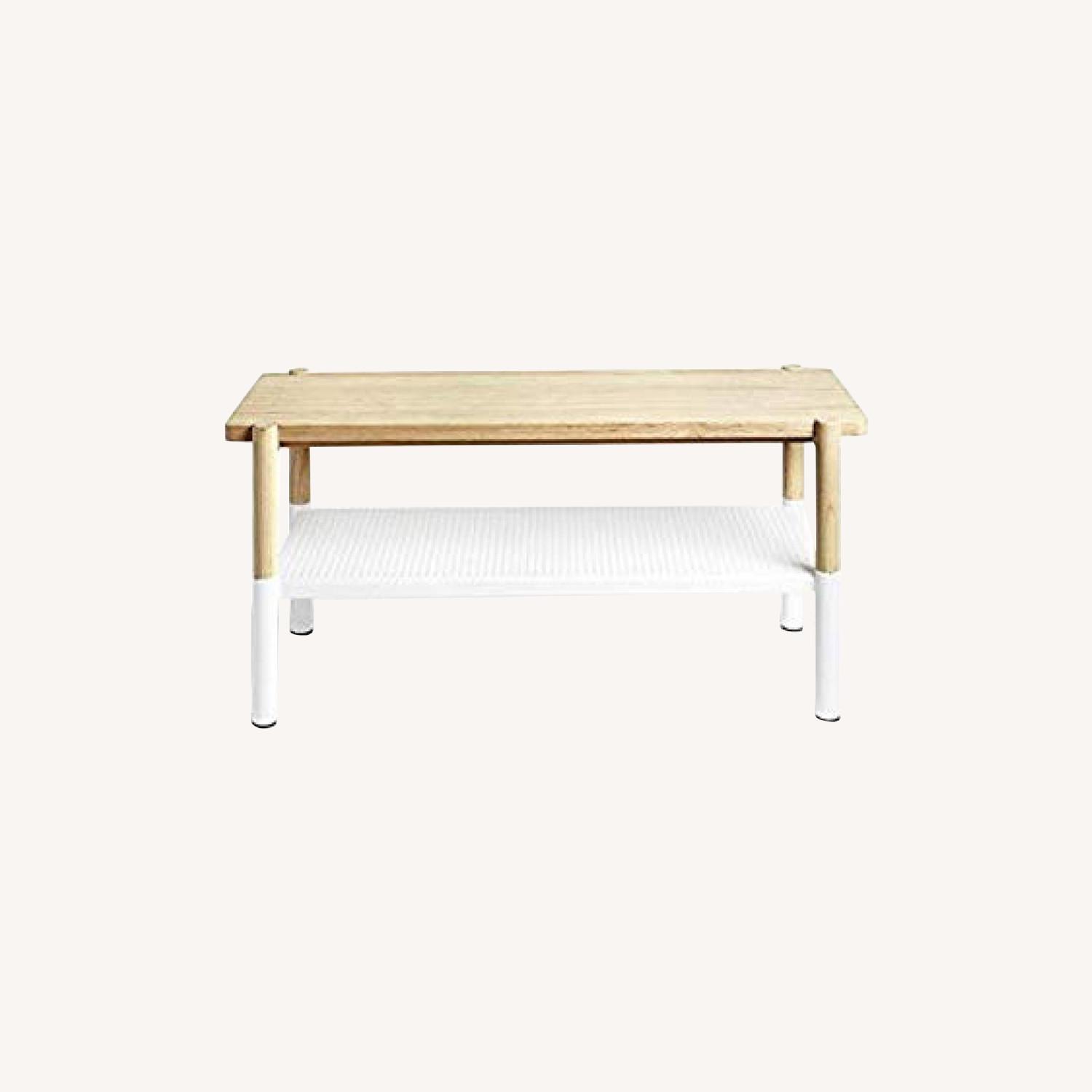Seller's Notes:1 year used, but in excellent condition Ashwood and perforated steel entryway bench with shoe storage underneath, holds four shoes on its perforated shelf, plus has room for additional shoes underneath, holds up to 250 lbs. 39 x 14 1/2 x 18 ¼ inches (99,1 x 36,8 x 46,4 cm )
