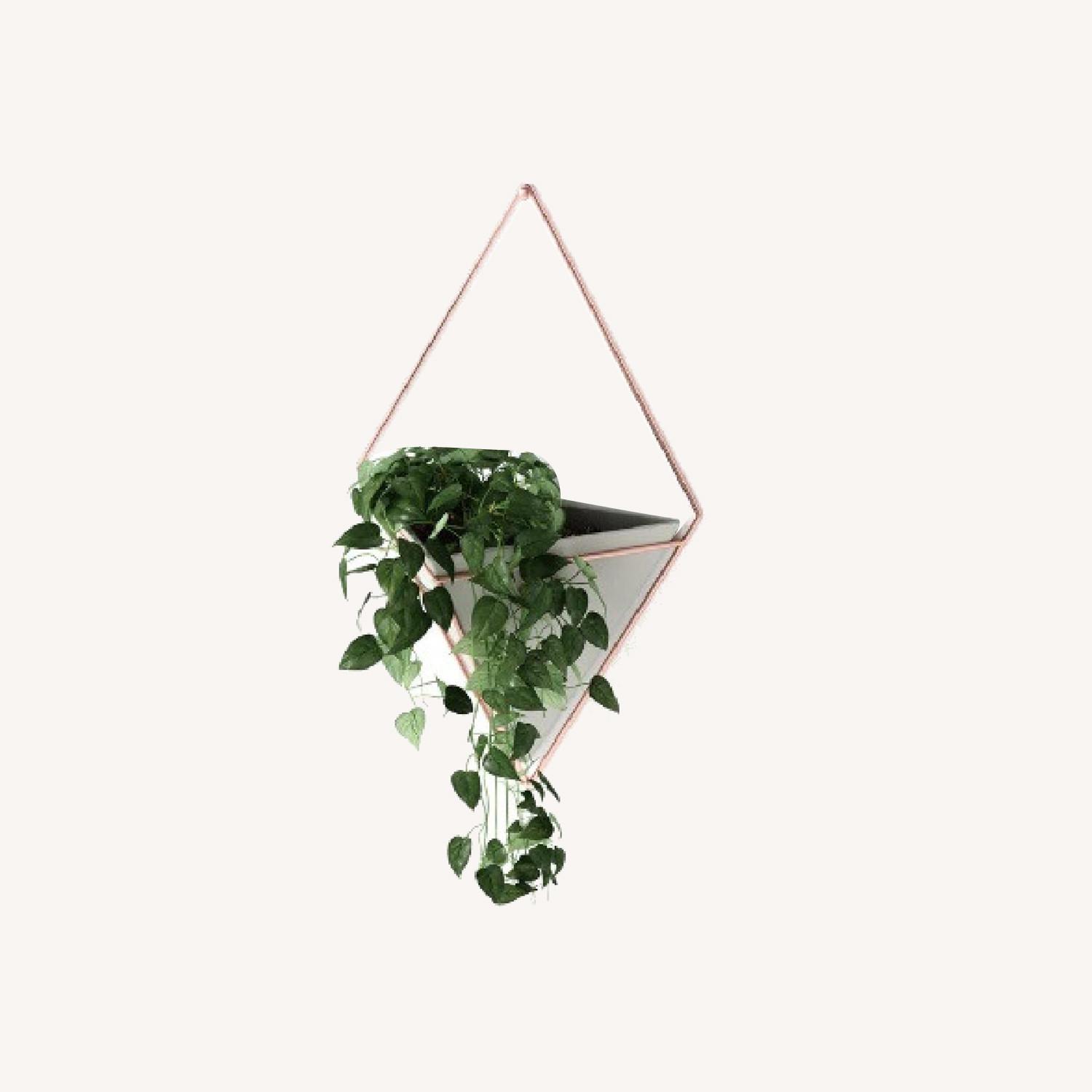 Seller's Notes:Triangle white and gold hanging planters! Faux plant included I have 6 of these, can be a set or individual
