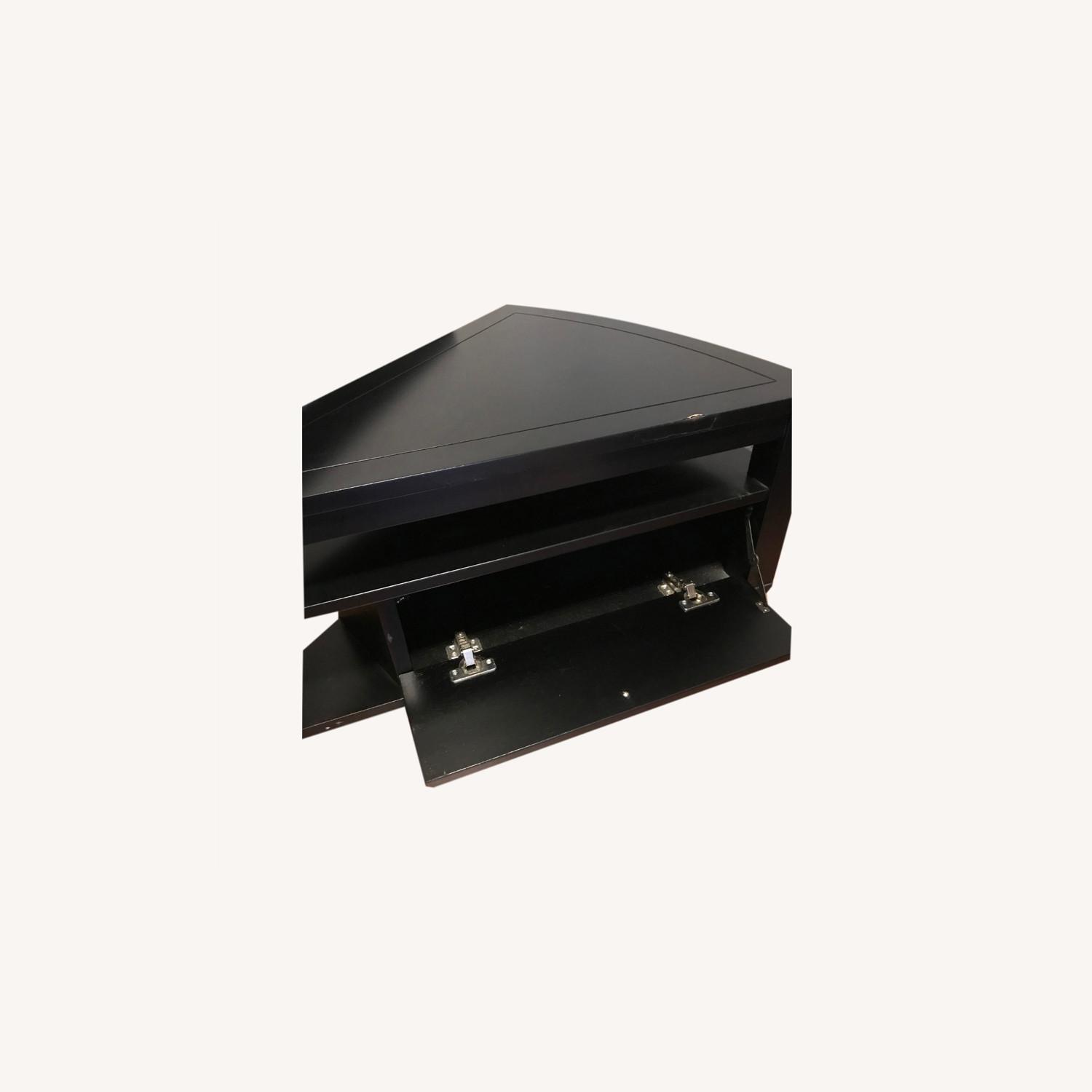 Seller's Notes:Glass Inlay, Storage Underneath. Table has been well taken care of and is clean. Glass is scratch free. The whole piece is in pretty good condition except for a chipped spot on the bottom level at the edge (see picture). It was rarely used as an actual coffee table due to NYC small spaces. It usually served as a side table, a place to put keys and mail.The bottom level has wheels and swivels out to create a nice step-like effect. Top level and glass inlay can be removed from base for easier transport.