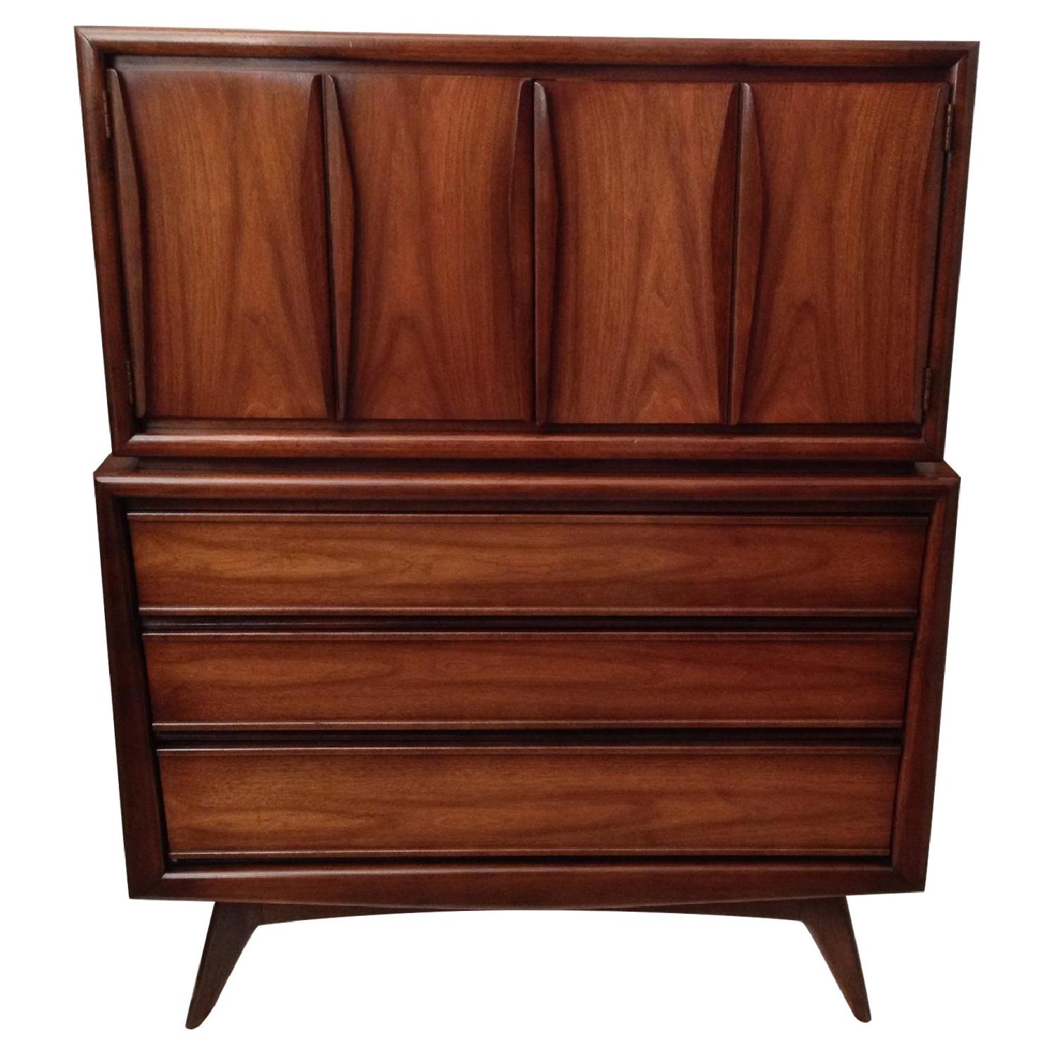 United Furniture Company Mid Century Modern Walnut 5 Drawer Chest on Chest