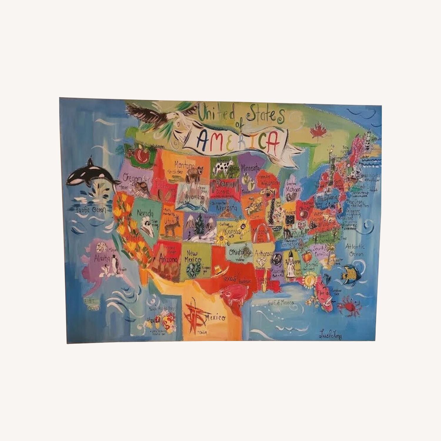 Seller's Notes:United States Map on Canvas, Beautiful Vibrant Colors with Drawings Perfect for Map lovers