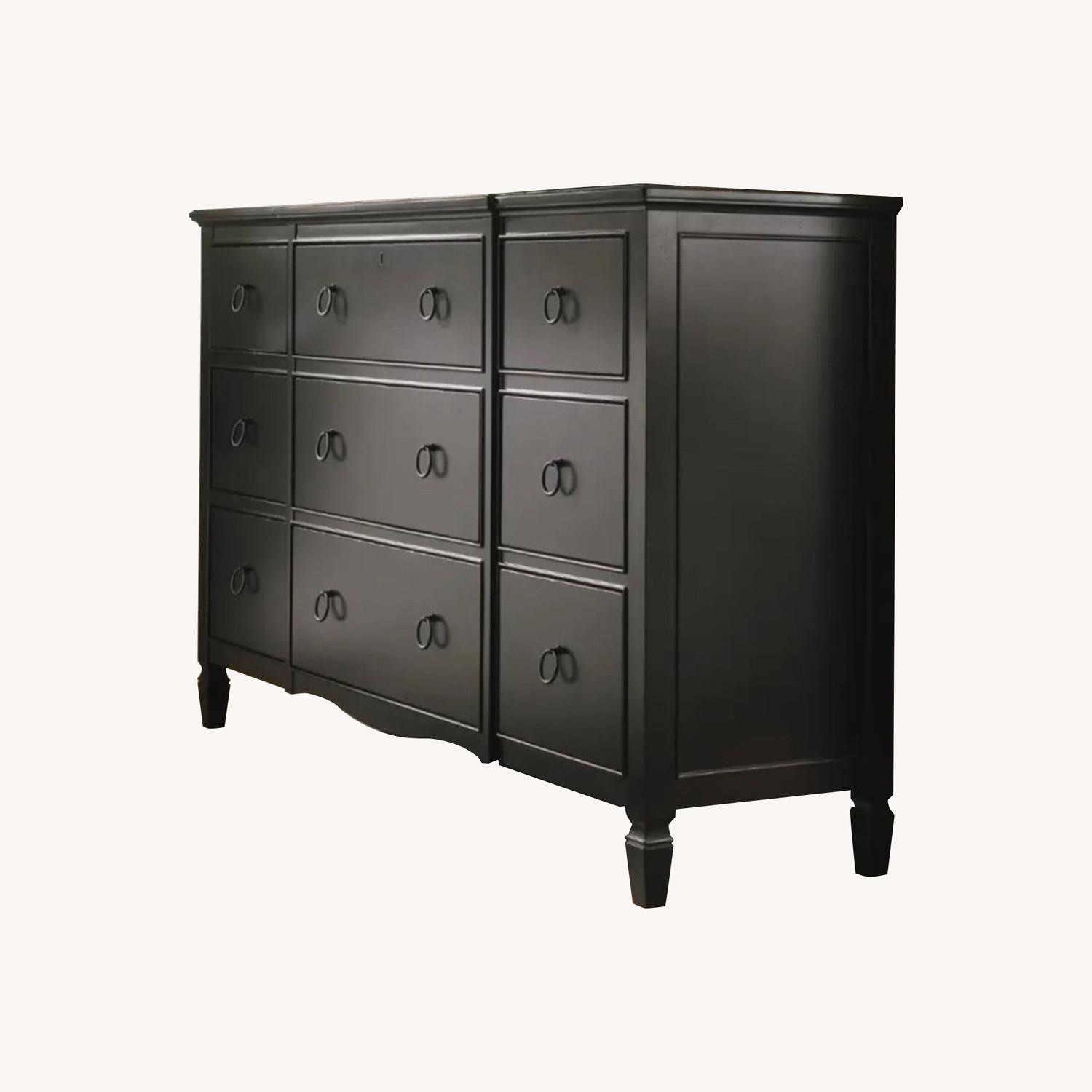 Seller's Notes:Beautiful, solid wood Universal Furniture “Summer Hill” 9-drawer dresser in sleek black finish.