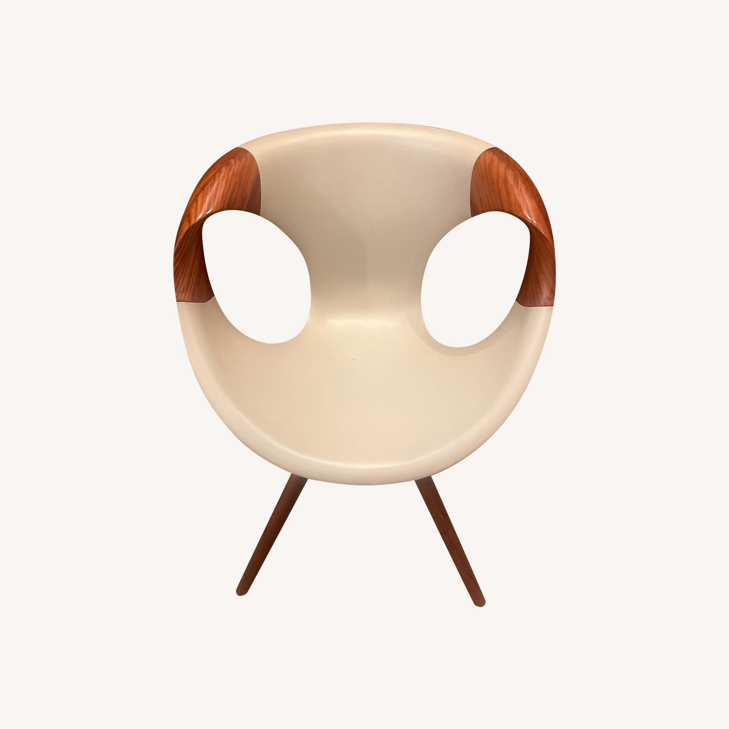 Seller's Notes:Set of 4 beautiful chairs that we are parting with due to a move - bought through our interior designer and many years of life left after being used for 3 years. From Manufacturer: The Up Chair (917.15) with Wood Arms by Tonon is a highly emotional product. This version of the popular Up Chair design uses wood legs in walnut. The seat is available in the soft in comfortable Freeform polyurethane foam in one of 4 different colors. The Up Chair is a great visitor or dining chair. Designed by the award-winning designer Martin Ballendat, the Up Chair won several design awards in 2012 including the Interior Innovation Award at IMM Cologne. Made in Italy by Tonon. Dimensions: H 32 1/4" D 22 1/2" W 25" SH 18 1/2" Materials: Leg in walnut. Freeform Advanced injected foam shell.