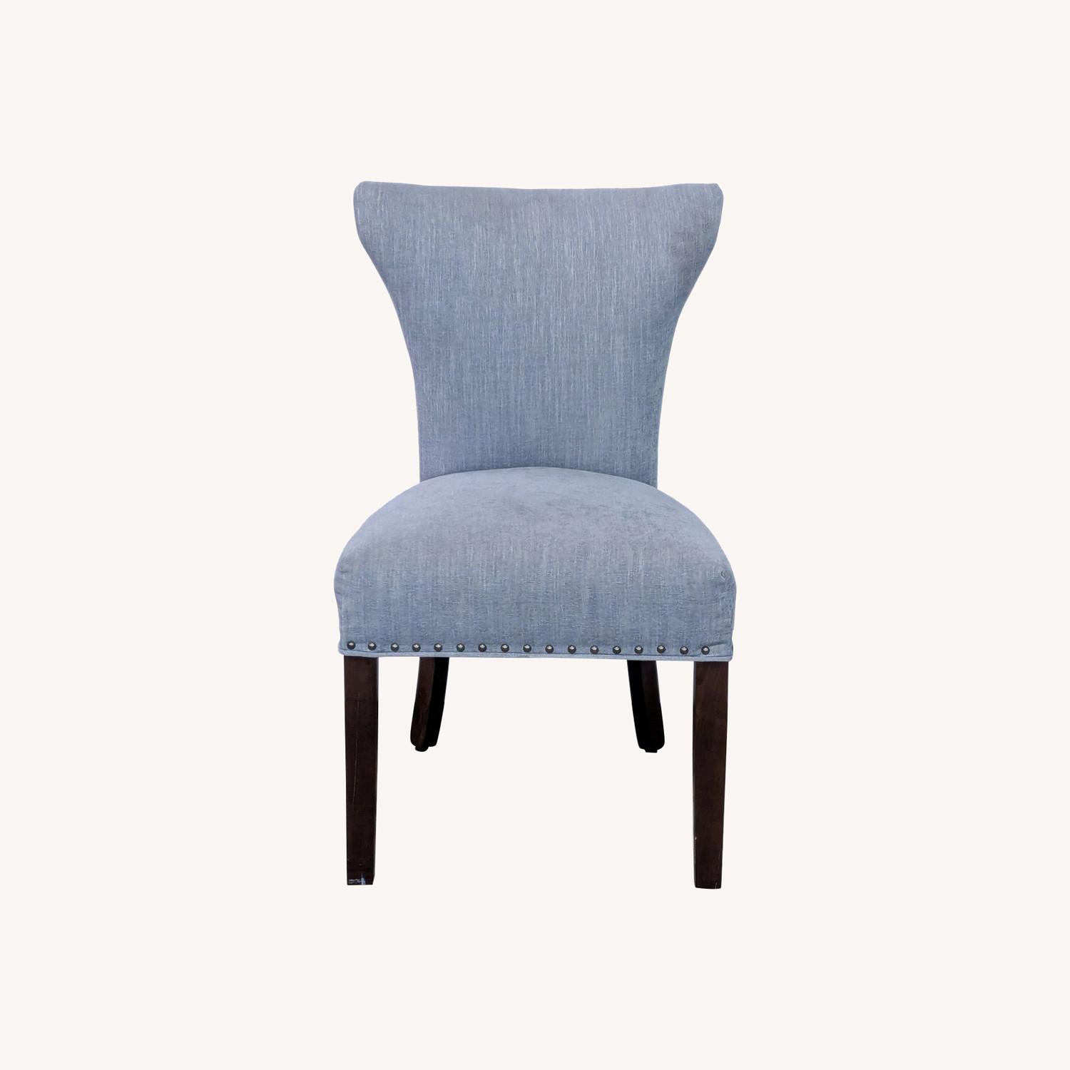 Seller's Notes:Tapered back on wood legs with nailhead trim throughout