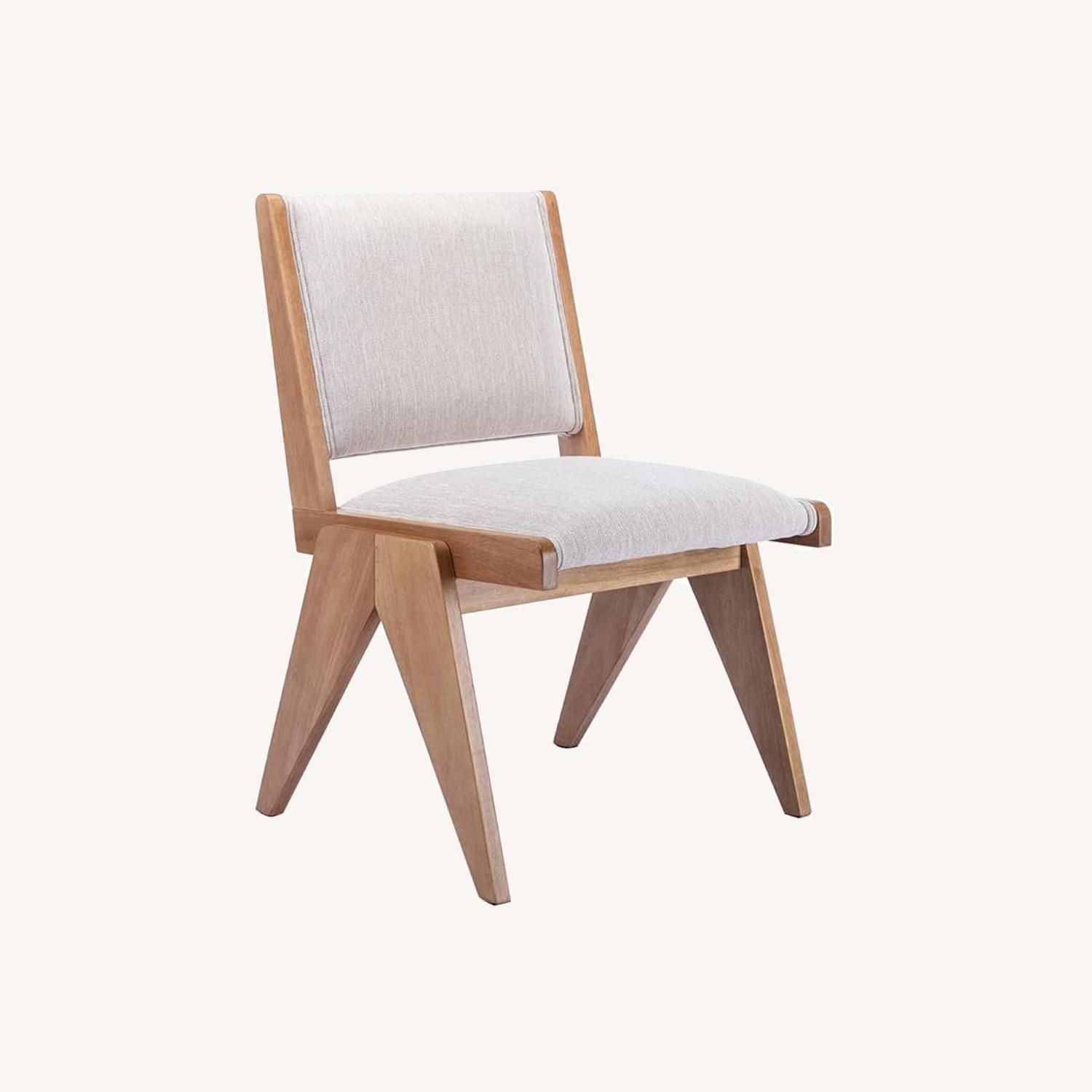 Elegant Design These dining chairs are equipped with upholstered backrests and seats, and inverted V-shaped solid wood legs. The design colors are coordinated. Simple and elegant, they will be a highlight of your dining room