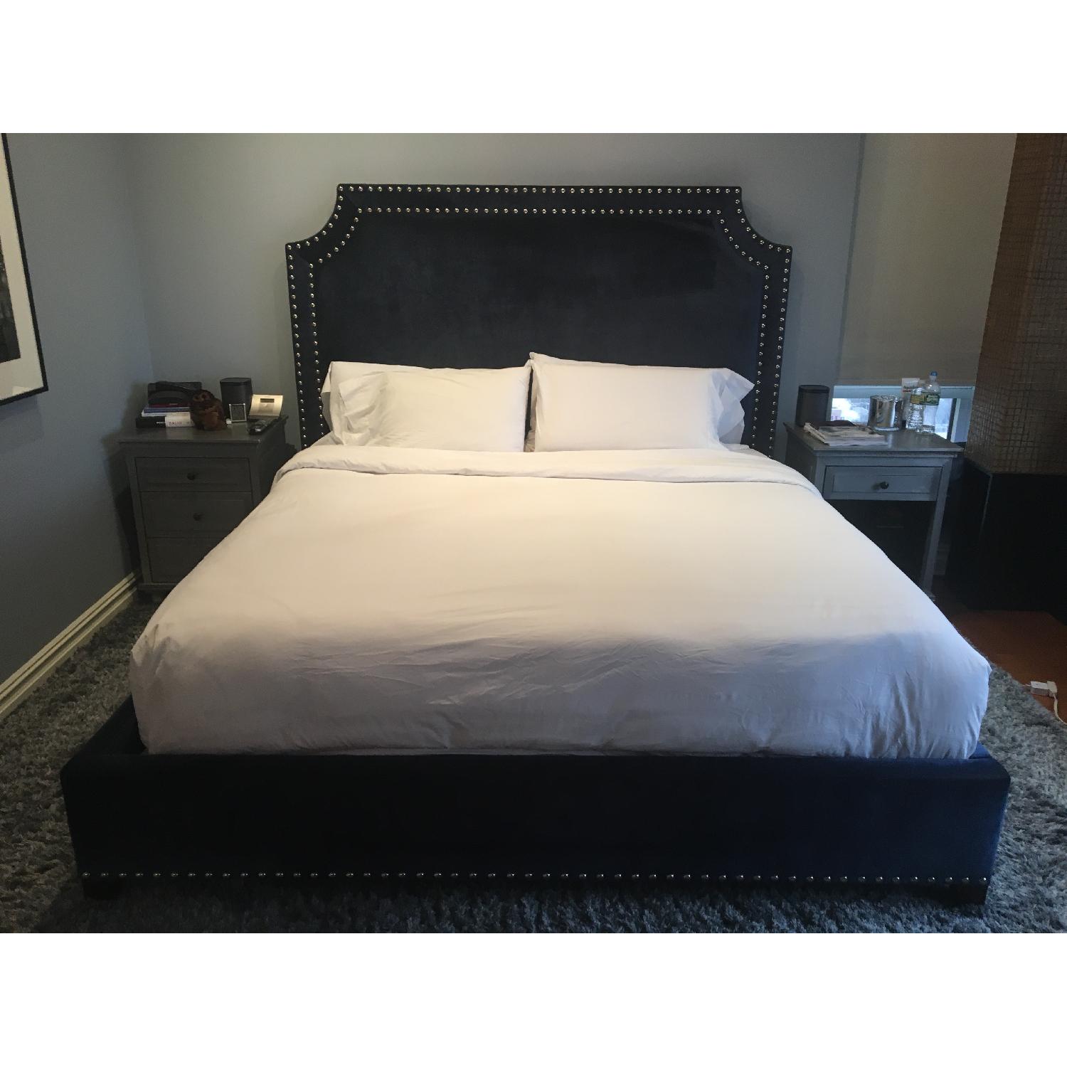 Seller's Notes:Moving Sale! Excellent Condition Velvet upholstered bed Hand-applied nailhead trim Slats included No box spring required