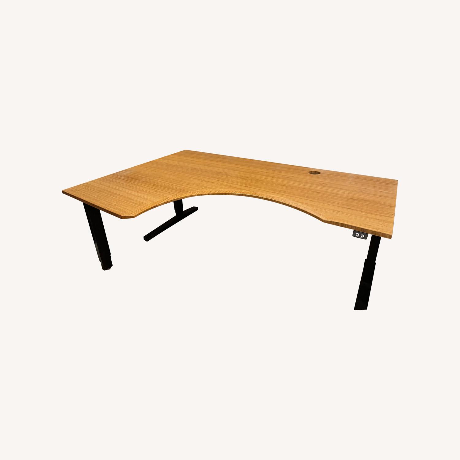 Seller's Notes:- Uplift standing desk in like-new condition - Legs are made of black metal and top is bamboo - Top is single-piece of wood with smooth / satin finish and has large surface area to work on - Height is ADJUSTABLE through electronic buttons (desk comes with hardware to plug into outlet) - Return is on the left side - Width is 72" inches - Depth on the short side is ~28" and on the long side is ~47"