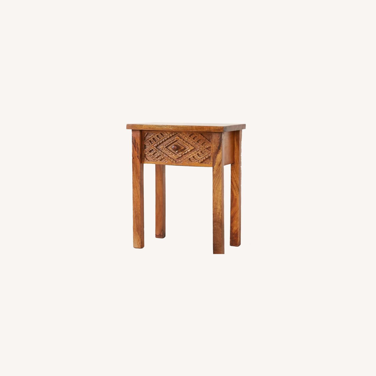 Seller's Notes:Beautifully boho nightstand crafted from natural Mango wood in a distressed finish we love. Perfect as a nightstand or side table in any space! Can add more photos 7/7. When I return to the apartment :)!