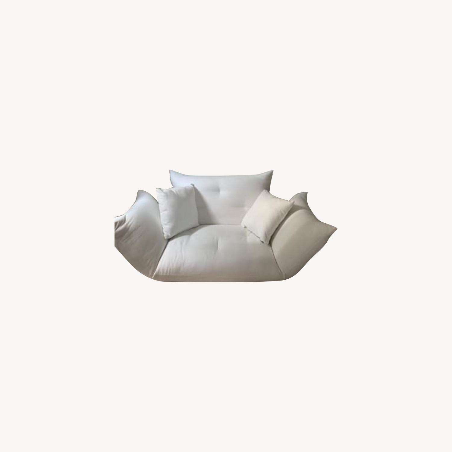 Seller's Notes:Urban Outfitters plush loveseat in near mint condition. Upholstered in white linen material and comes with two square pillows in the same material. Arms and back are adjustable to various angles - from upright all the way to flat on the ground. Once flattened, it serves as an extremely comfortable twin size bed. When fully upright it is 62" W x 32" D x 27" H. Available for pick up in East Village/Gramercy area ASAP.