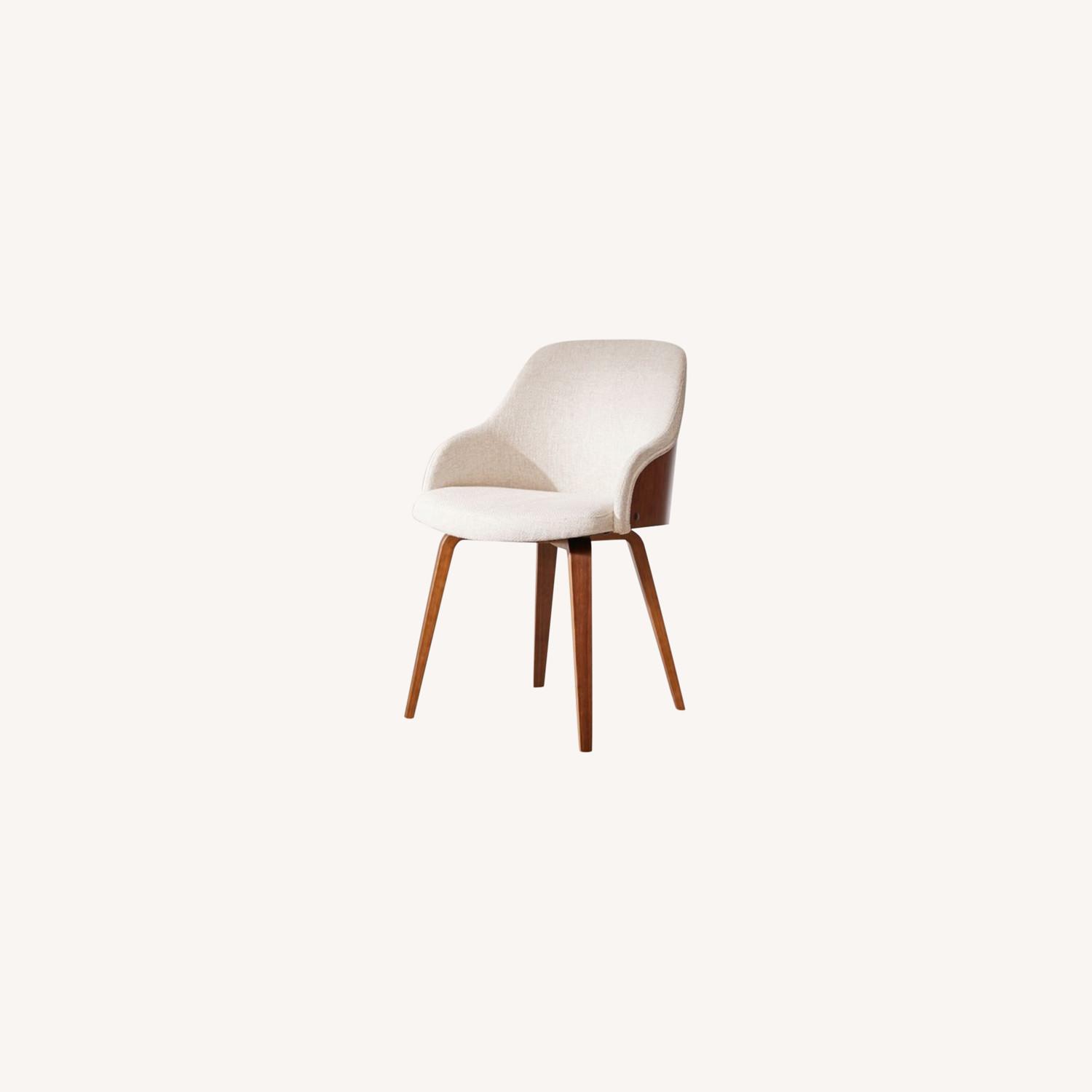 Seller's Notes:I'm selling an Urban Outfitters Bacci chair for $170, originally purchased new in early 2020 for $279. In near-perfect condition. It features a birch wood frame and richly varnished walnut veneer with a sleek, cushy seat upholstered in textural tweed. Finished with 4 tapered legs for a modern-retro touch. - Dimensions: 21.25"l x 20.5"w x 31.25"h - Seat dimensions: 16.5"d x 18"w x 14”h - Seat to Floor: 18.25"h - Armrest dimensions: 4.5"h x 6.5”l - Seat back angle: 101° - Weight: 17 lbs