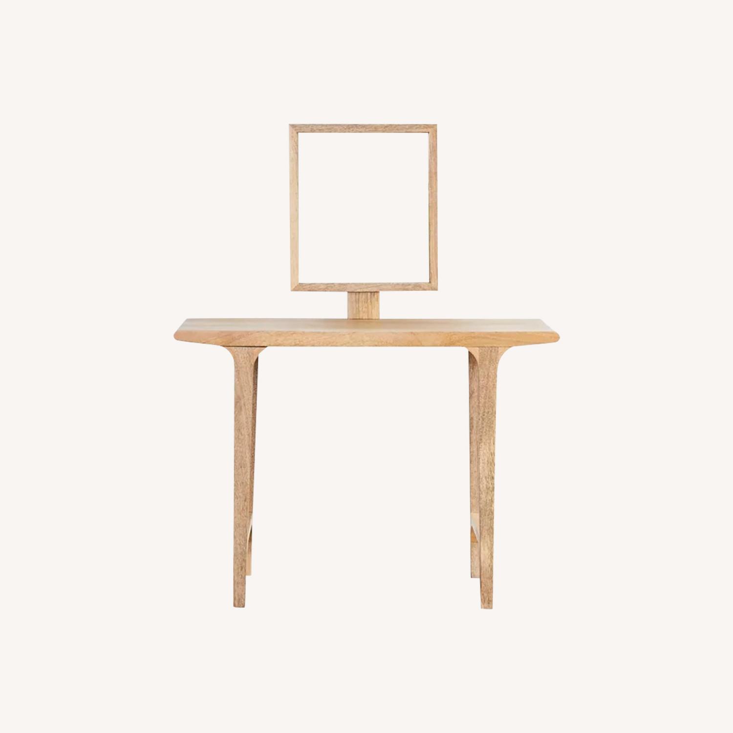 Seller's Notes:Romantic boho chic yet minimalist solid mango wood vanity with free matching patchwork chair also from UO. No longer in stock, moving sale priced to go quickly and grab while you can. Some natural wood variations and stains from normal wear and tear (4 years old). Must pick up from Hudson Yards by Friday 4/12 42 L x 20 W x 51 H
