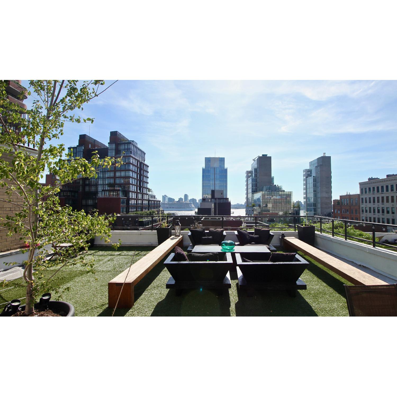 Seller's Notes:Solid Teakwood indoor/outdoor chair from Urban Zen (Donna Karan's lifestyle line). Originally priced at $7,000. Gentle used - nearly indestructible and extremely solid. Will include pillows on request. 4 chairs available.