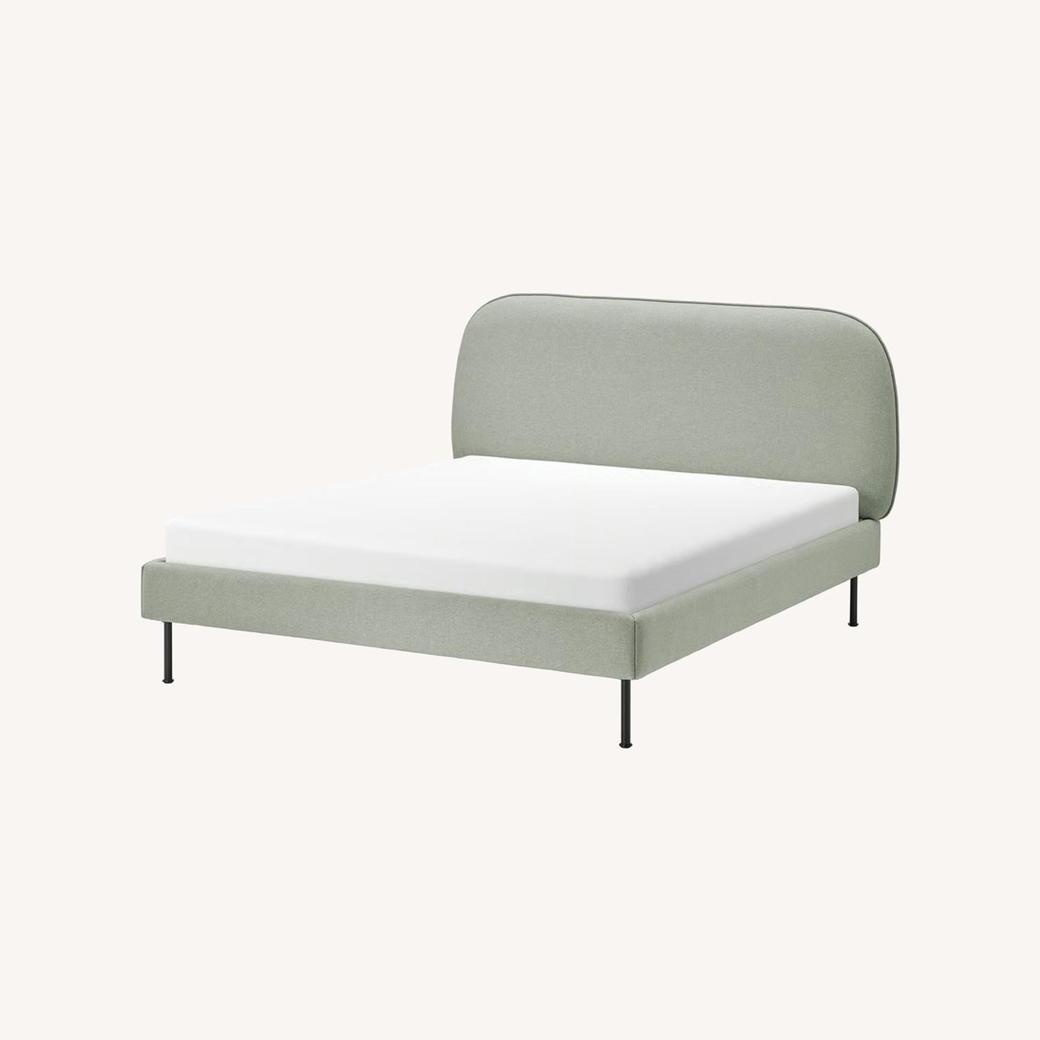 Seller's Notes:Queen sized bed frame in Gunnared light green from Ikea. There’s plenty of space under the bed for storage boxes - perfect for storing extra duvets and pillows. You can easily vacuum under the bed frame to keep the space clean and dust-free. Mattress and pillows are not included.