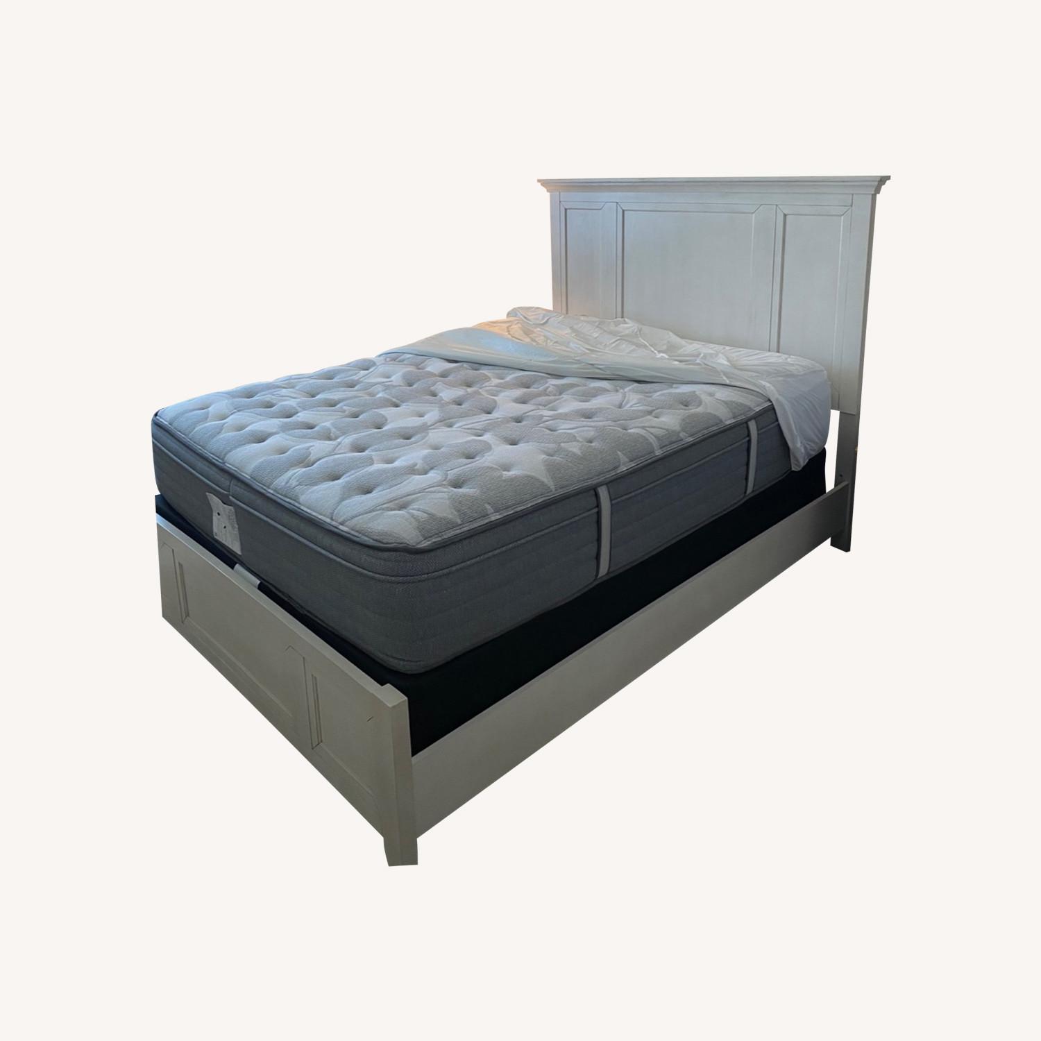Seller's Notes:Purchased from Value City Furniture. Bed and frame are in excellent condition. Solid bed frame, Lincoln solid wood Queen, panels white. Sku 2883317, No pets or kids, in a non-smoking apartment.