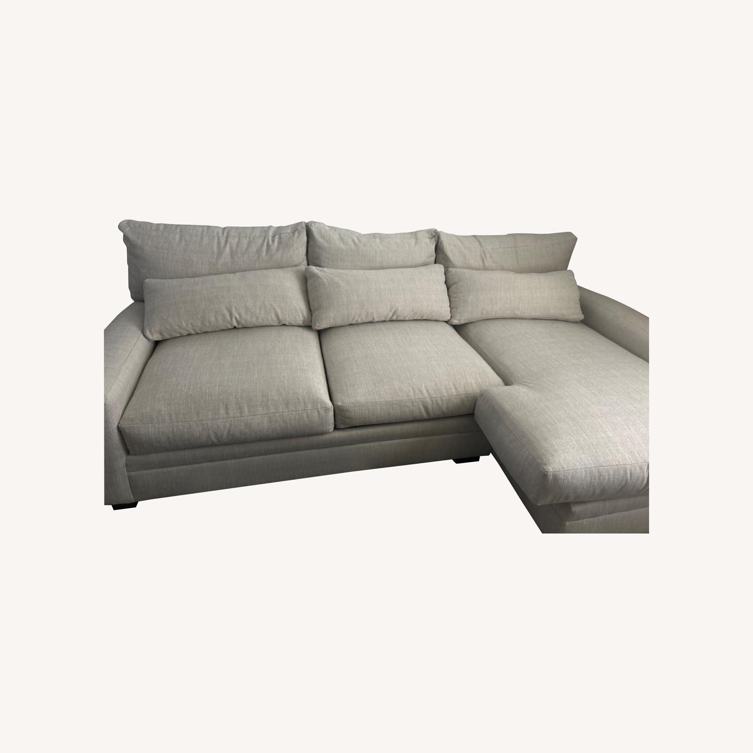 Seller's Notes:Winston-2 piece sectional with chaise (hybrid comfort cushions) Also have two extra replaceable cushions (foam comfort). Only had for a year just ready for a change. Basket weave material. Mason porcelain color.