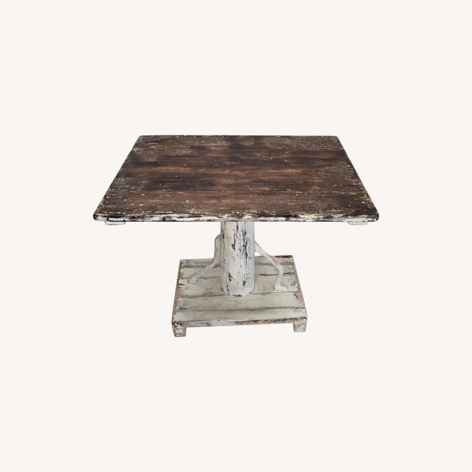 Seller's Notes:Purchased from Four Hands Furniture. This is not an antique, but part of the Van Thiel antique collection where they age and "blemish" new furniture to make it appear as old and with character Nothing wrong with the table, doesn't work in new apartment.