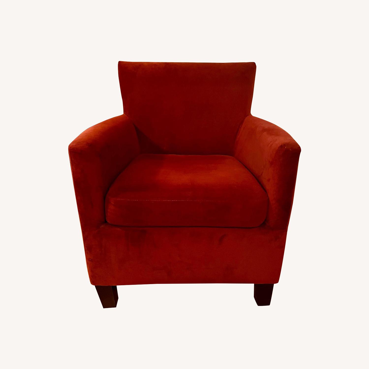 Seller's Notes:Super comfy velvet armchair perfect for reading or watching TV. One small spot that I haven't tried to get out. Otherwise no blemishes.