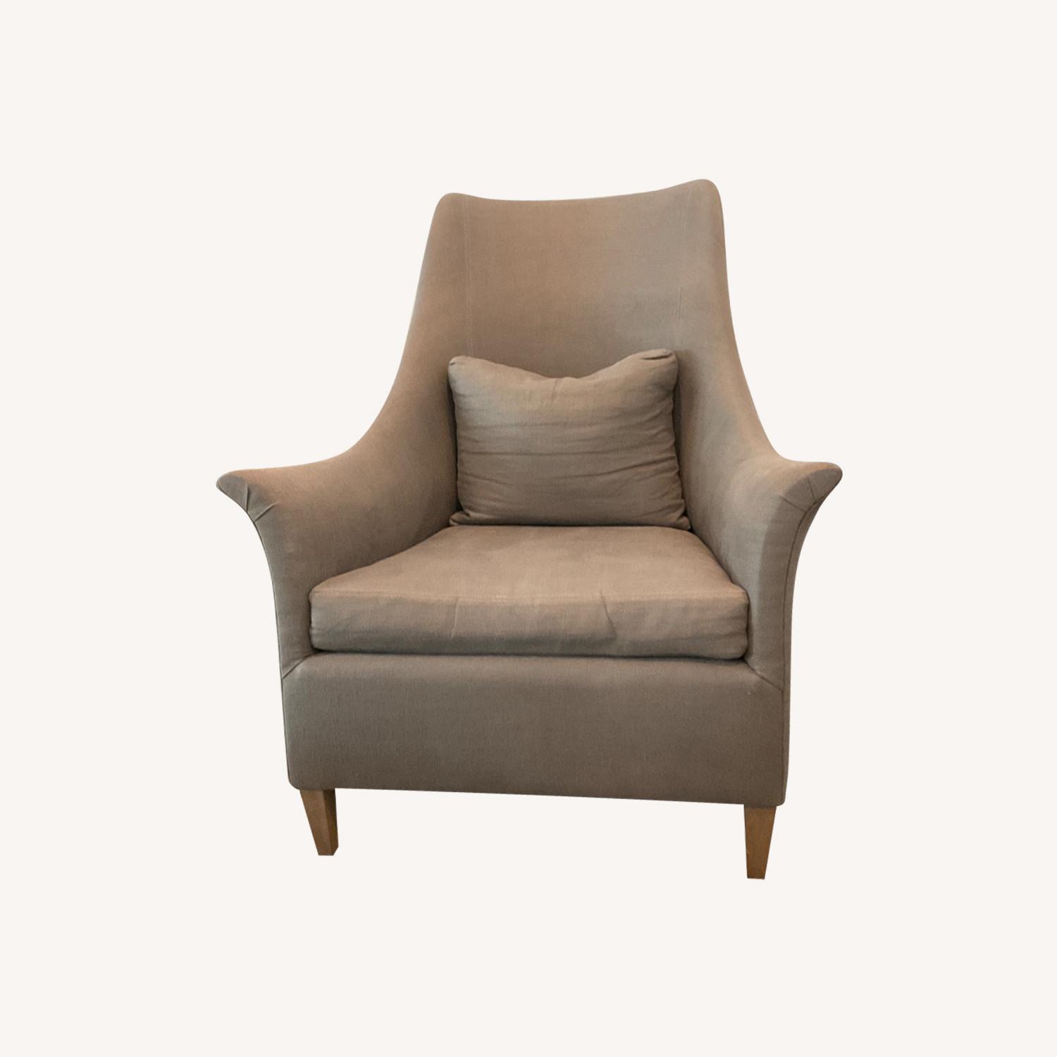 Seller's Notes:The Melody Wing Chair features a gracefully contoured silhouette with elegant curved arms, a high supportive back. Made in North Carolina. Down & Feather seat and back cushion. Like new condition. No damage.