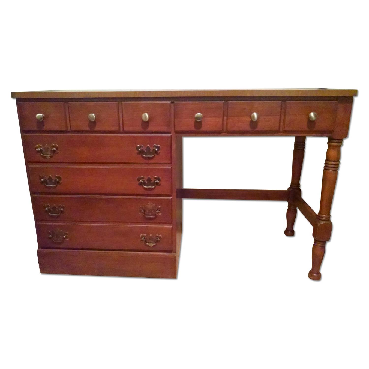 Seller's Notes:A compact desk, purchased in the 1960s, passed down from my dad. Constructed from "solid rock maple" by Vermont of Winooski. Total of four drawers - two big ones, two shorter ones. Heavy. Lots of random marks on the inside of drawers from two kids growing up with it - pencil marks, pen marks, stains. Very few marks on the outside. The outside has a nice finish that is super scratch resistant.