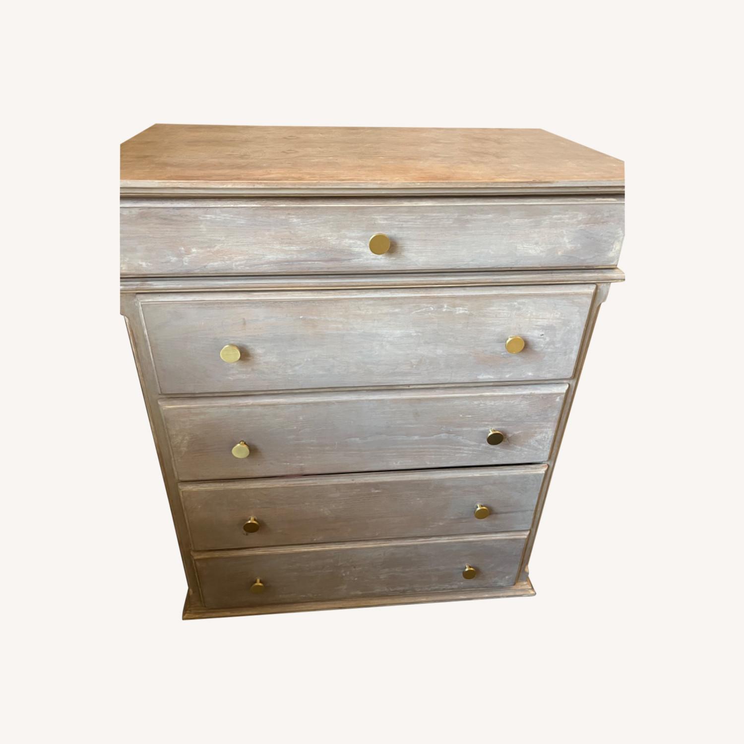 Seller's Notes:Solid wood Vermont Stubbs dresser from the 90s is solid wood and extremely sturdy. Has been refinished with a restoration hardware feel. New pulls also added to the dresser. This is a custom, one of a kind piece. ** not Vermont Furniture- dresser is Vermont Tubbs which was not an option to select. Also dresser lives with non-shedding hypoallergenic dog. ~NCI