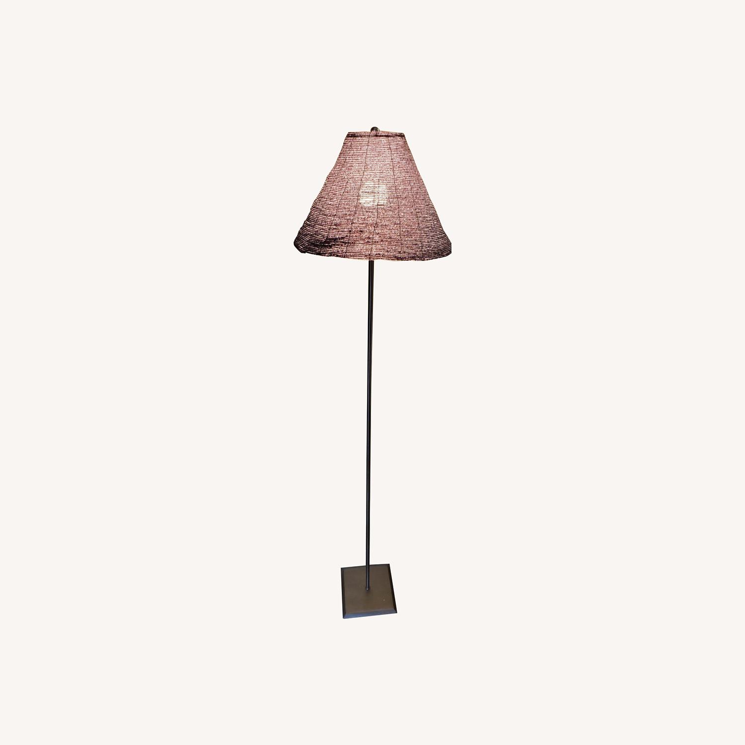 Seller's Notes:Got this lovely purple beaded lampshade floor lamp approximately 27 years ago. If I remember correctly I got it at Pottery Barn but since it's not marked I am not 100% sure, so don't hold me to it...thanks. The height measurement of 58 inches is up to the top of the round silvertone bead (which twists off easily to remove the lampshade and also change the lightbulb). Nice slim metal stand, the base is approximately 7.5 inches square, so it does not take up a lot of floor space. And the lampshade at its widest is approximately 14 inches (can be cleaned with a soft damp cloth). Minor scratches on the base and discoloration on the bottom of the base, which is not visible. Please zoom in on photos to see details and don't hesitate to ask questions.
