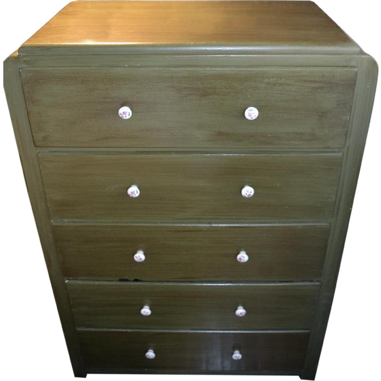 Seller's Notes:This dresser is an original 1950's 100% pure wood dresser. Hand painted. Originally blonde wood so very easy to strip and would be beautiful in original wood. Originally a children's dresser. 5 drawers, holds a ton! Perfect size, beautiful condition. There are only a few minor scratches on the top, see pictures. Very easy to buff and repaint and is otherwise in perfect condition.