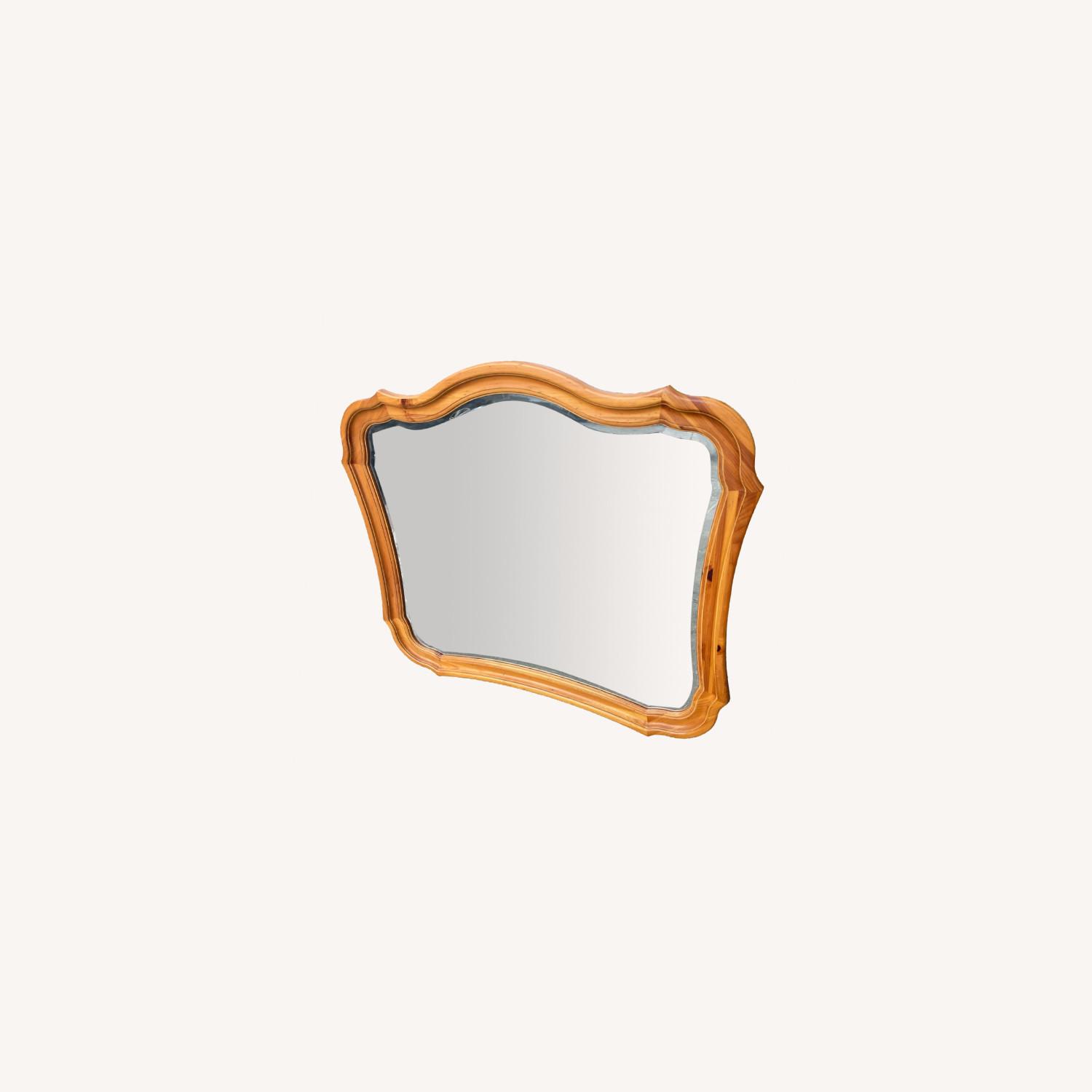 Vintage 1980s Beveled Solid Pine Framed Mirror