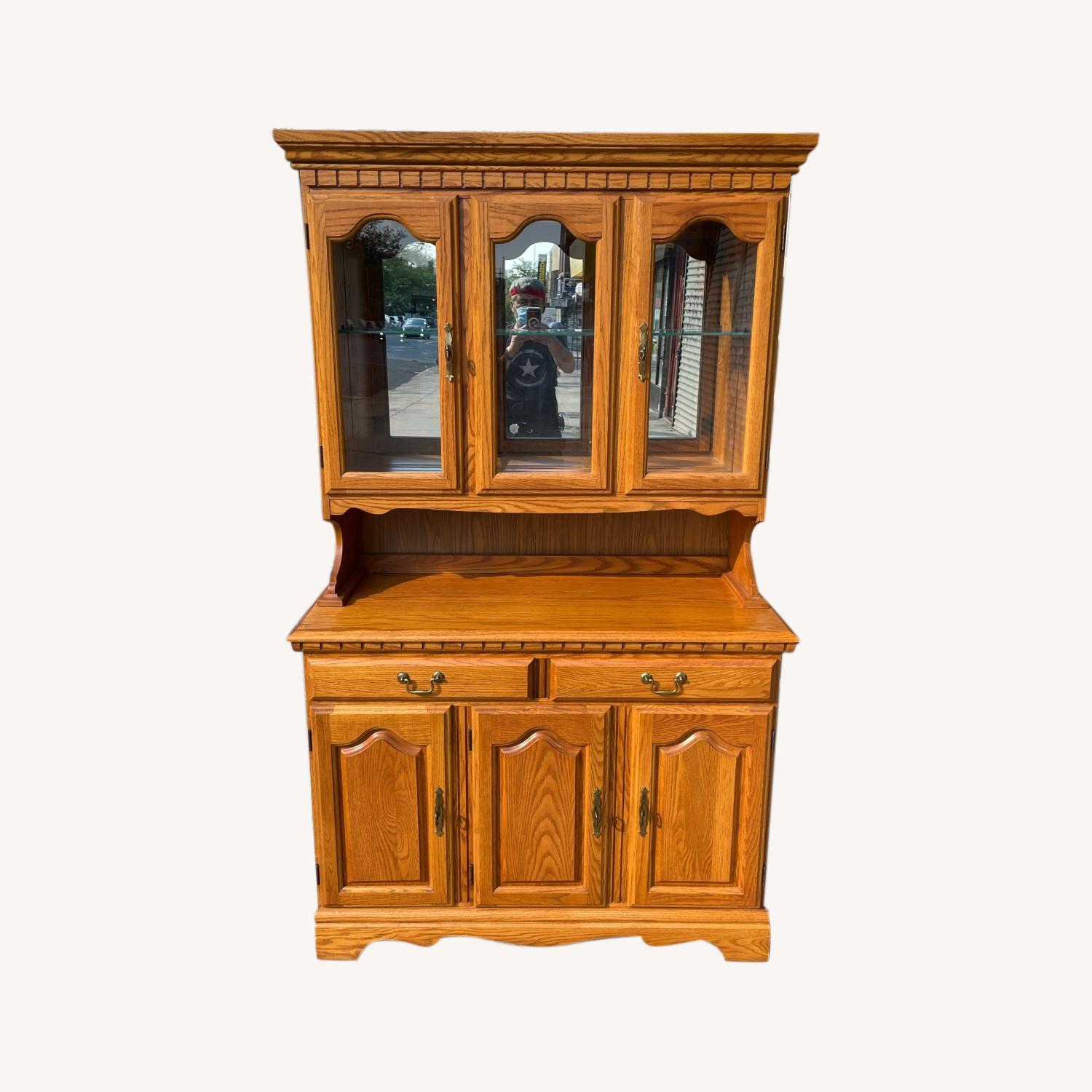 Vintage 1980s Country Style Oak Hutch w/ Light