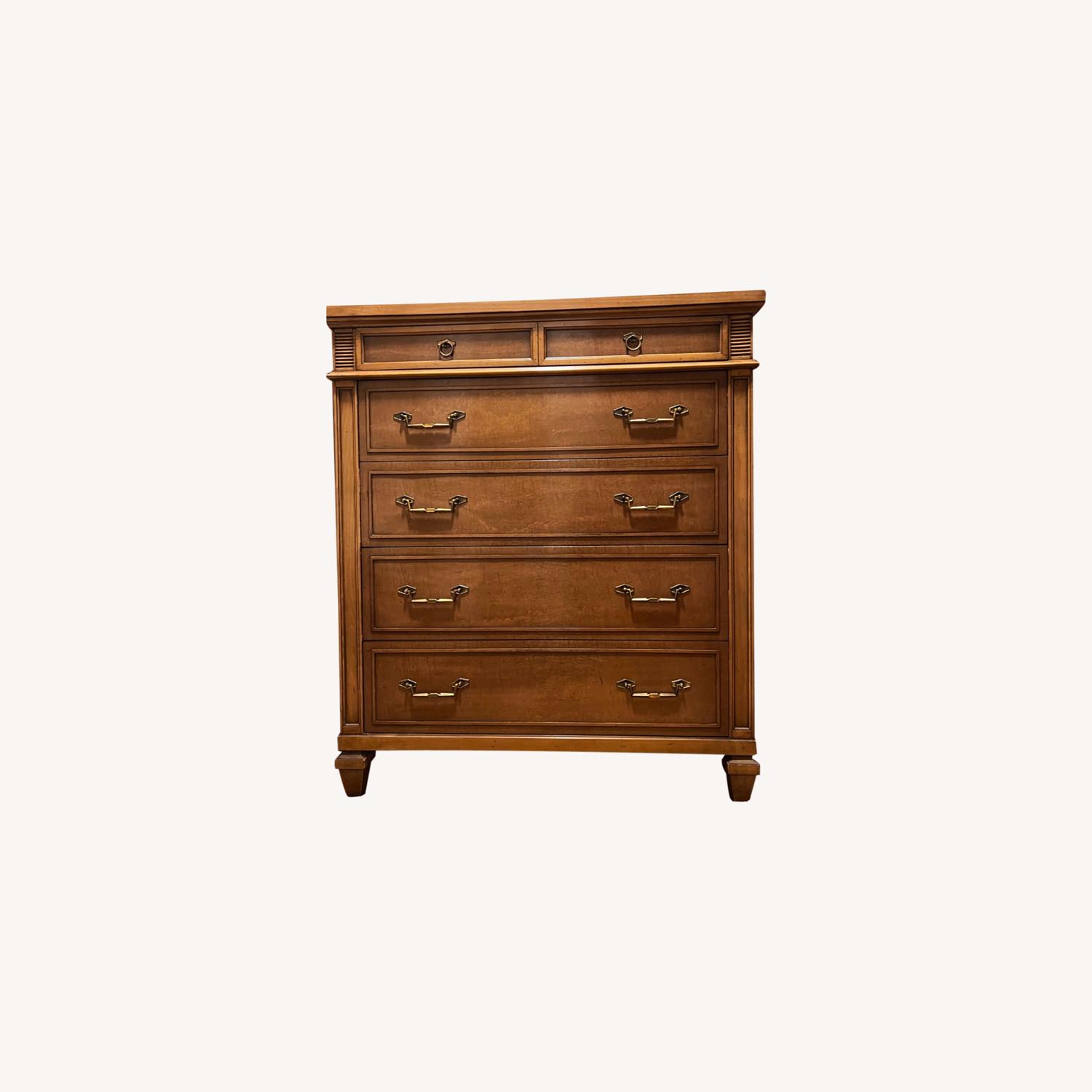 Seller's Notes:This is a great, very well made dresser. The drawers move smoothly and have supports underneath. One of the drawers pictured has great dividers and the top narrow drawer is perfect for jewelry, ties, etc. There are a few water stains on the top which could likely be removed with some TLC This dresser has many years of life left in it — it’s served me well!