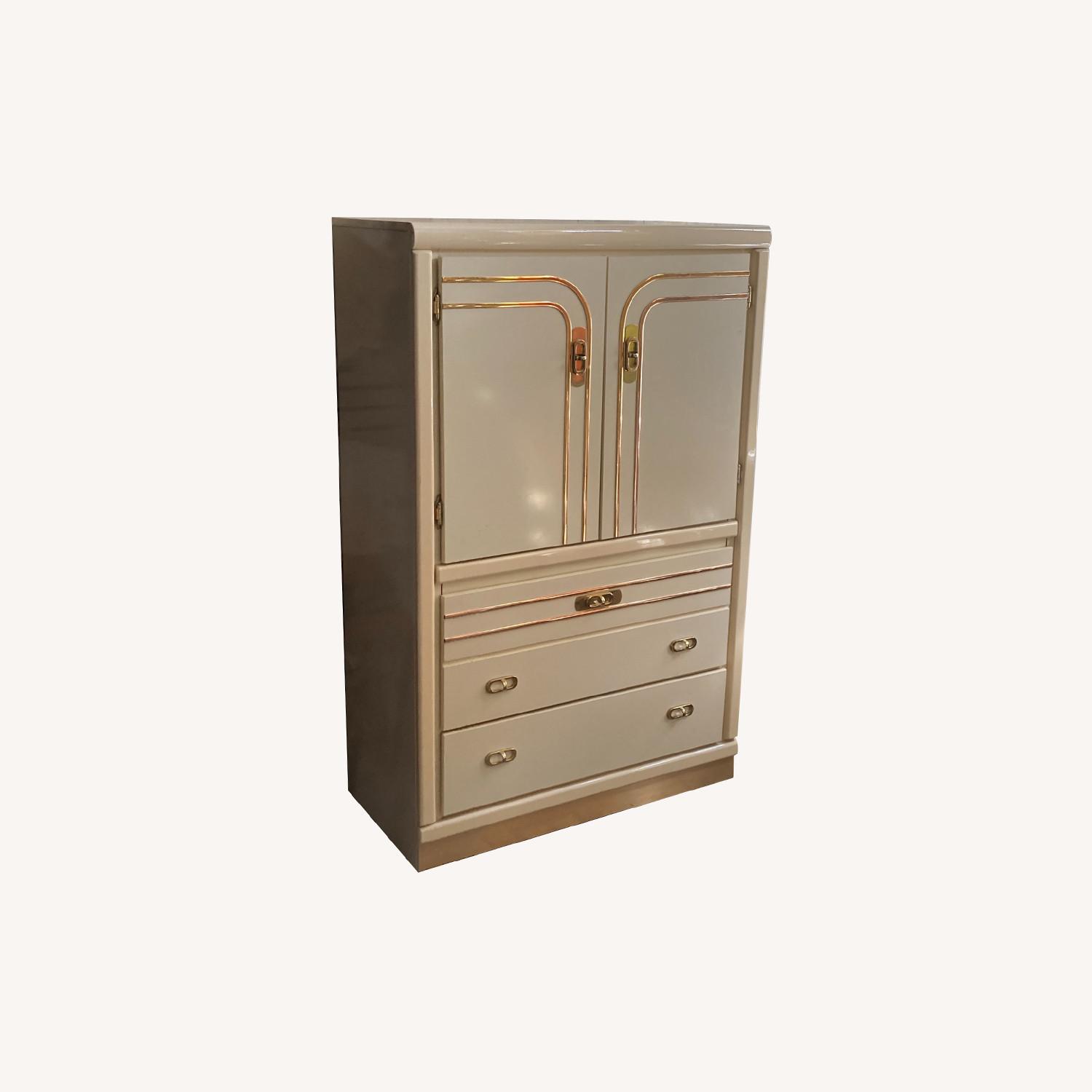 Seller's Notes:This beautiful and unique dresser is part of a bedroom set that includes a dresser with mirror and a queen/double headboard and bed frame. I estimate this set to be from the early 80s. It is very good condition for its age with some minor wear which is to be expected for a piece of this age. Most of the wear is along the edges and corners. I've tried my best to show the wear and tear accurately in the photographs but feel free to reach out if you would like to see more. Check my other listings for the matching pieces. I am willing to sell the entire three-piece set with bed frame for $2600 .