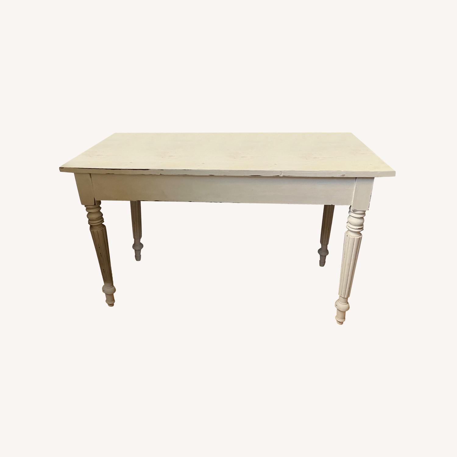 Seller's Notes:Beautiful original wood desk that has been painted in an ivory white and intentionally distressed to give it that antique look.