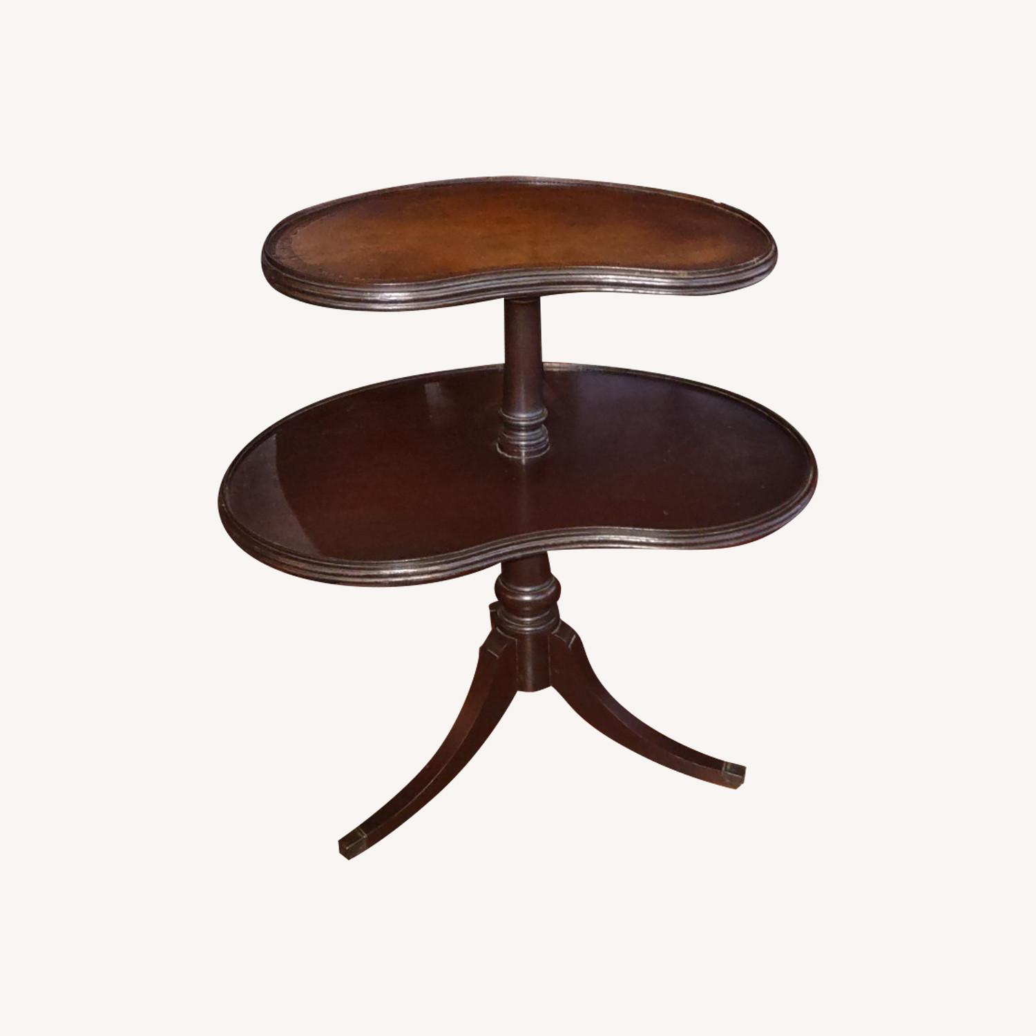 Seller's Notes:Vintage antique dark brown solid wood table. Very nice decorative table. Can be use as a corner or center table.