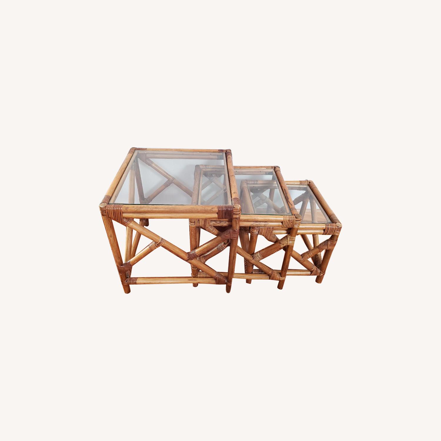 Vintage Asian Mid Century Glass & Bamboo Nesting Tables
