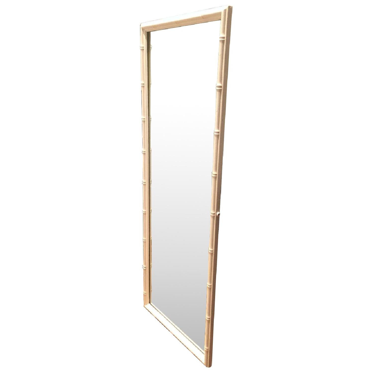 Seller's Notes:Vintage Bamboo Style full length mirror from the 1970s. Made of solid wood, repainted white. Hanging wire on back.