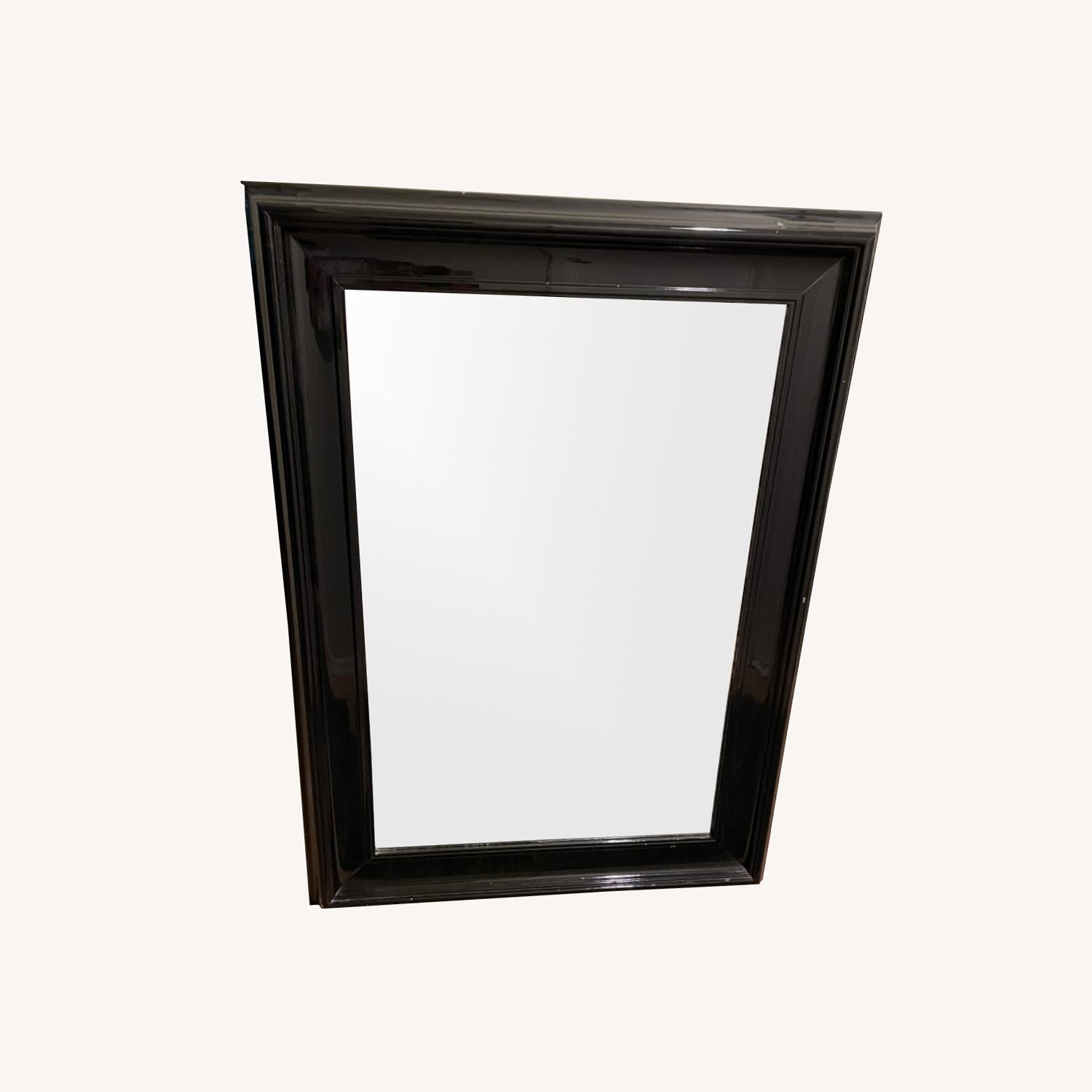Seller's Notes:High-gloss black lacquered mirror featuring beveled glass. Heavy-weight wood frame. Super sturdy mirror can be hung horizontally or vertically. Glass in excellent shape with no scratches.