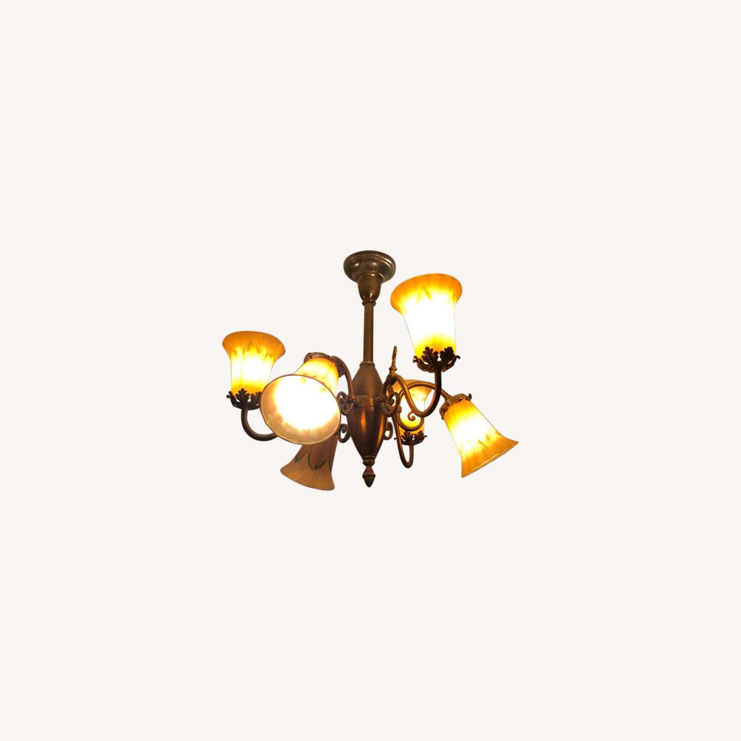 Seller's Notes:This vintage brass 6-bulb ceiling light fixture with colored glass shades is truly a one of a kind piece! Brings light and beauty to any room and gives a classic vintage feel to any space. Meant to last a lifetime and be a true conversation piece - it's a must have!