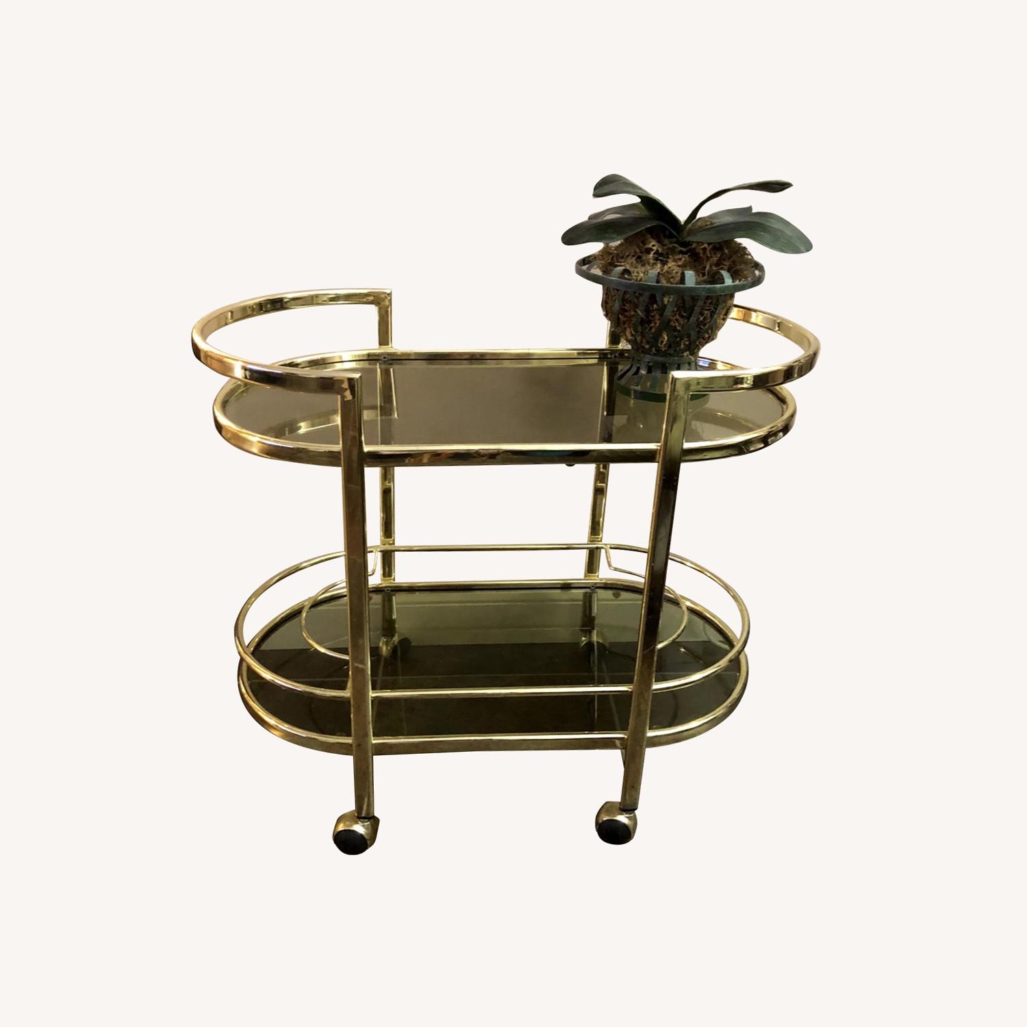 Seller's Notes:Vintage Glass & Brass Bar Cart from the 80's. This bar cart saw quite a few parties back in the day and it's still in great shape waiting to throw some parties in its new home!