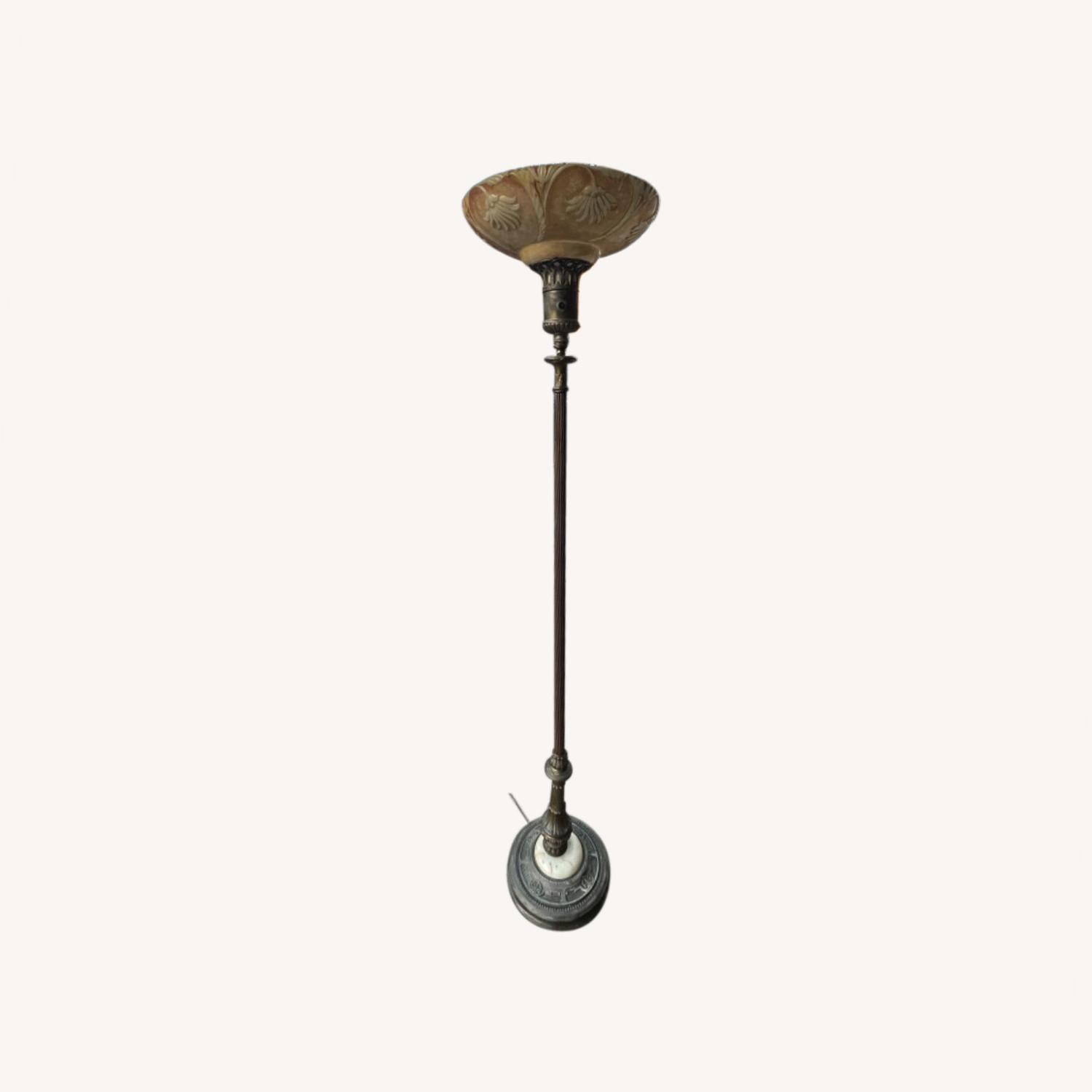 Vintage Brass & Marble Lamp w/Milk Glass Shade