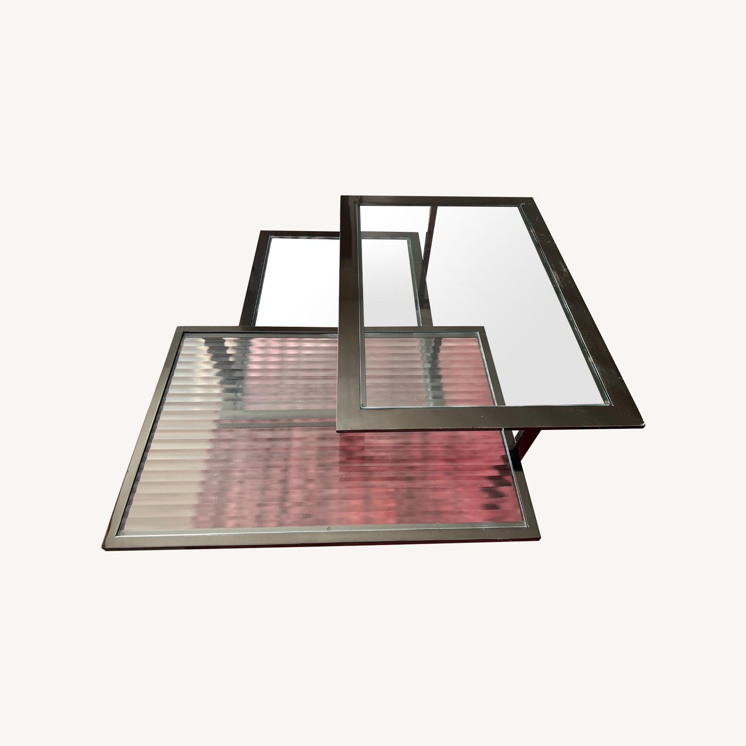 Seller's Notes:Glamorous, chrome tri-level coffee table. This is a top quality piece of furniture with a heavy, solid frame. It was purchased in NYC 20 years ago for $5K+ but I can't recall the brand name. The frame is a smoked chrome color and one of the glass pieces is frosted. There are scratches in various places on the chrome from wear and tear over the years, but this is still a gorgeous table that will make a statement in any living room. Measurements of each level: Top 35x25, middle 33x23, bottom 34x24. Pick up available on UWS.