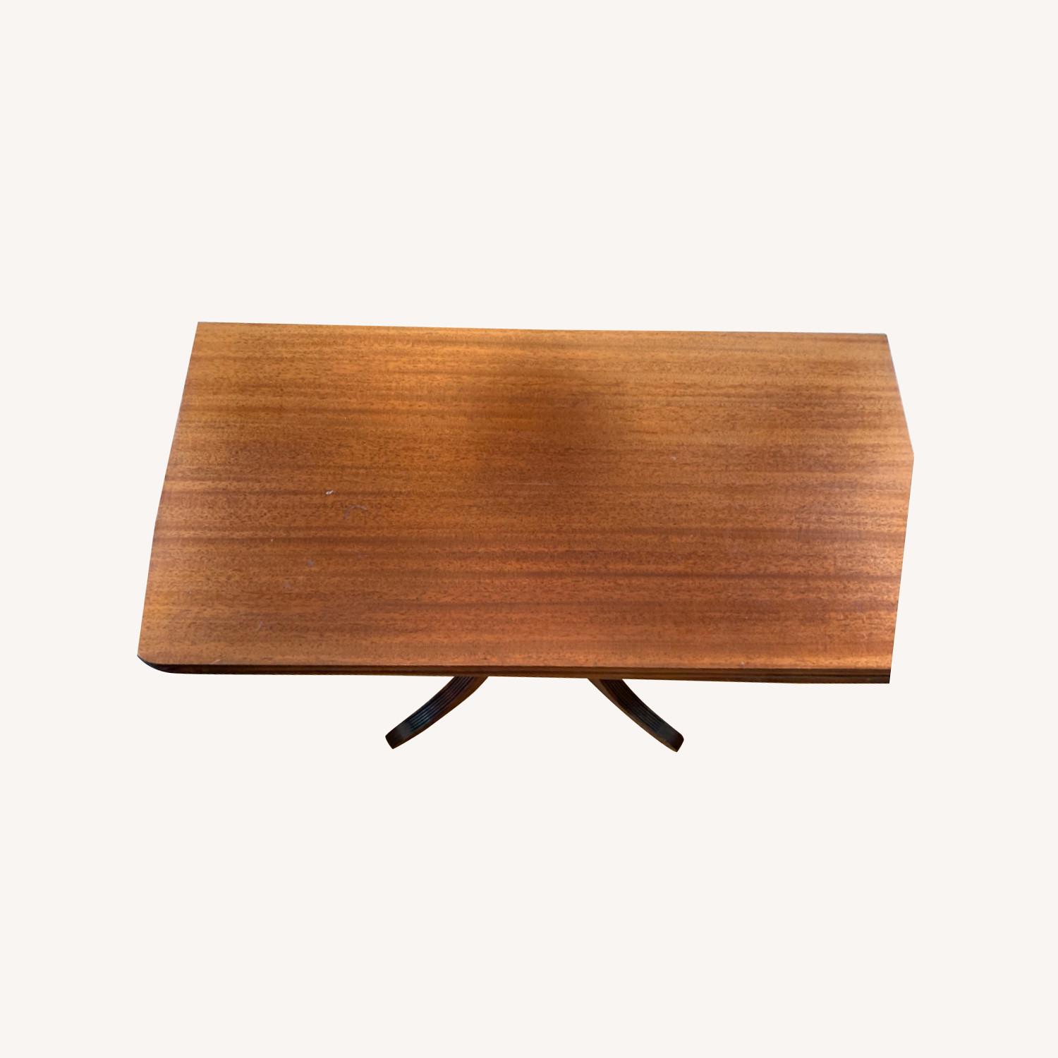 Seller's Notes:Bridge players, heads up! This beautiful vintage card table seats 4 and then converts easily to a side table (measuring 33.5” wide, 16.5” deep). So it’s useful all the time! A few minor scratches but otherwise in fabulous shape. Not clear on the age but at least 40 years old and probably more - built solidly, no wobble whatsoever. Get this and start dealing!